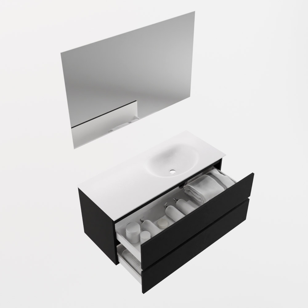 MONDIAZ LAGOM 110cm mueble de baño solid surface Urban 1 cajón lavabo CLOUD Centro sin orificio