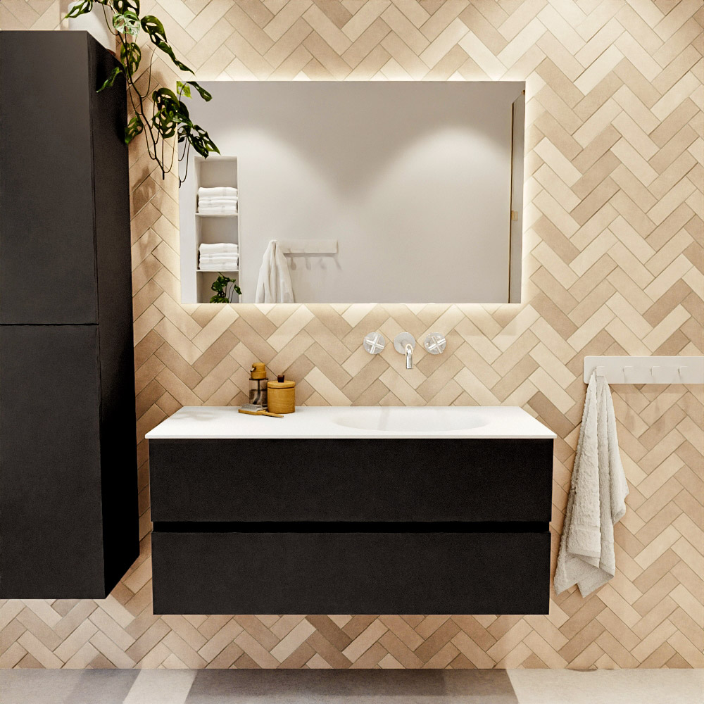 MONDIAZ VICA 100cm mueble de baño Dark Brown 2 cajones lavabo CLOUD Derecho sin orificio con espejo LED.El precio original era: 1.404,75€.1.160,95€El precio actual es: 1.160,95€. +IVA Ver productoLos mejores muebles de baño entrega rápida |📦 +5.000 modelos diferentes |💵 Paga cómodamente | 📹 Videoconferencias y visita a nuestro Showroom | 💡 Inluimos la válvula – sifón click clak