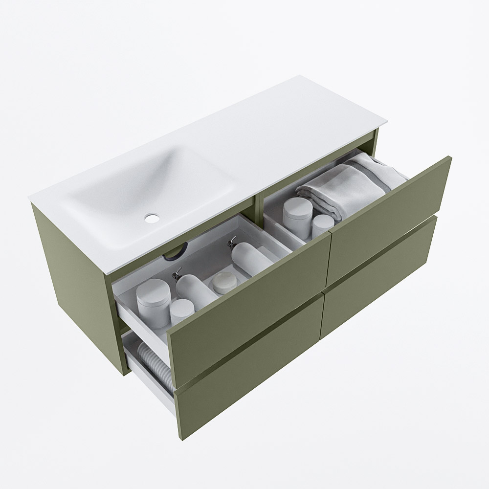 MONDIAZ VICA 120cm mueble de baño Army 4 cajones. Lavabo CLOUD Izquierda sin orificio, color Talc.