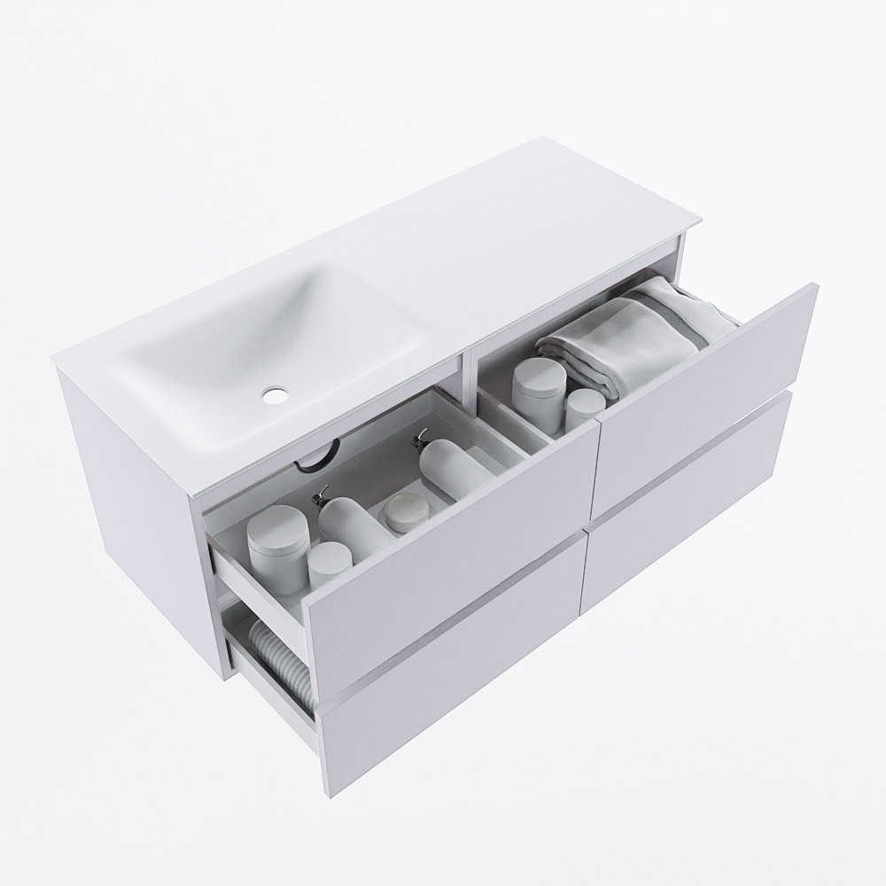 Ya sea que elija un color o un acabado de madera, un mueble de baño a medida, con o sin agujeros para grifos, el conjunto de muebles de baño Vica lo tiene todo. Con la serie Vica, puede elegir entre 3 modelos de lavabos: CLOUD y MOON en Solid Surface, con opciones de lavabo a la derecha, izquierda, en el medio o doble, y con o sin agujeros para grifos. También está el lavabo de cerámica DENIA con opciones en el medio y doble. El conjunto de muebles de baño Vica está disponible en una amplia gama de tamaños estándar, desde 60 cm hasta 200 cm, que aumentan en incrementos de 10 cm. El mueble de baño Vica está disponible en hasta 25 colores, incluyendo nuestros colores especiales Oro y Plata. Si no encuentra el tamaño o color ideal, siempre es posible hacer un pedido a medida. También puede coordinar su baño completo con columnas, bañeras, nichos y accesorios, todos en el mismo color. Con el conjunto de muebles de baño Vica, tendrá un mueble fantástico que completa su baño.