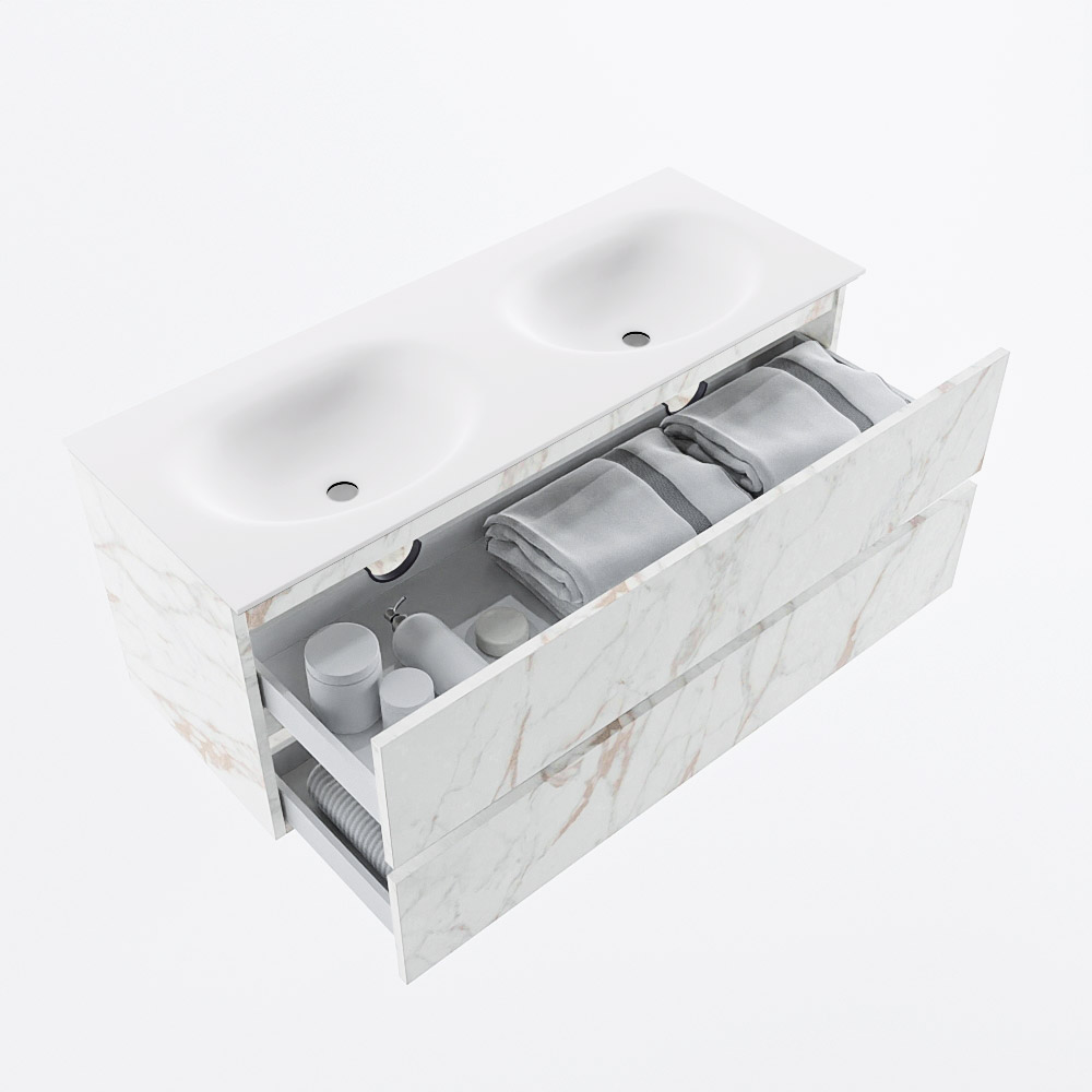Ya sea que elija un color o un acabado de madera, un mueble de baño a medida, con o sin agujeros para grifos, el conjunto de muebles de baño Vica lo tiene todo. Con la serie Vica, puede elegir entre 3 modelos de lavabos: CLOUD y MOON en Solid Surface, con opciones de lavabo a la derecha, izquierda, en el medio o doble, y con o sin agujeros para grifos. También está el lavabo de cerámica DENIA con opciones en el medio y doble. El conjunto de muebles de baño Vica está disponible en una amplia gama de tamaños estándar, desde 60 cm hasta 200 cm, que aumentan en incrementos de 10 cm. El mueble de baño Vica está disponible en hasta 25 colores, incluyendo nuestros colores especiales Oro y Plata. Si no encuentra el tamaño o color ideal, siempre es posible hacer un pedido a medida. También puede coordinar su baño completo con columnas, bañeras, nichos y accesorios, todos en el mismo color. Con el conjunto de muebles de baño Vica, tendrá un mueble fantástico que completa su baño.