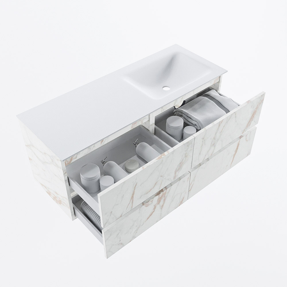 Ya sea que elija un color o un acabado de madera, un mueble de baño a medida, con o sin agujeros para grifos, el conjunto de muebles de baño Vica lo tiene todo. Con la serie Vica, puede elegir entre 3 modelos de lavabos: CLOUD y MOON en Solid Surface, con opciones de lavabo a la derecha, izquierda, en el medio o doble, y con o sin agujeros para grifos. También está el lavabo de cerámica DENIA con opciones en el medio y doble. El conjunto de muebles de baño Vica está disponible en una amplia gama de tamaños estándar, desde 60 cm hasta 200 cm, que aumentan en incrementos de 10 cm. El mueble de baño Vica está disponible en hasta 25 colores, incluyendo nuestros colores especiales Oro y Plata. Si no encuentra el tamaño o color ideal, siempre es posible hacer un pedido a medida. También puede coordinar su baño completo con columnas, bañeras, nichos y accesorios, todos en el mismo color. Con el conjunto de muebles de baño Vica, tendrá un mueble fantástico que completa su baño.