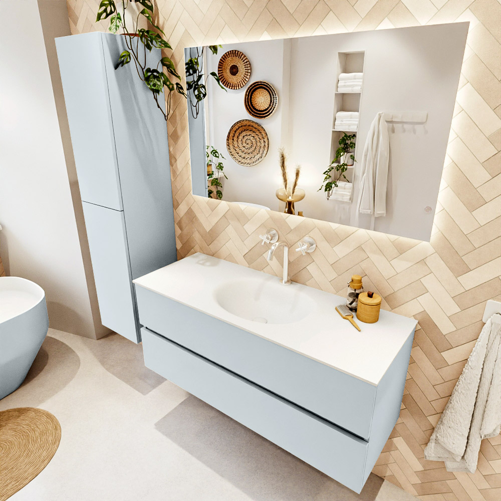 Ya sea que elija un color o un acabado de madera, un mueble de baño a medida, con o sin agujeros para grifos, el conjunto de muebles de baño Vica lo tiene todo. Con la serie Vica, puede elegir entre 3 modelos de lavabos: CLOUD y MOON en Solid Surface, con opciones de lavabo a la derecha, izquierda, en el medio o doble, y con o sin agujeros para grifos. También está el lavabo de cerámica DENIA con opciones en el medio y doble. El conjunto de muebles de baño Vica está disponible en una amplia gama de tamaños estándar, desde 60 cm hasta 200 cm, que aumentan en incrementos de 10 cm. El mueble de baño Vica está disponible en hasta 25 colores, incluyendo nuestros colores especiales Oro y Plata. Si no encuentra el tamaño o color ideal, siempre es posible hacer un pedido a medida. También puede coordinar su baño completo con columnas, bañeras, nichos y accesorios, todos en el mismo color. Con el conjunto de muebles de baño Vica, tendrá un mueble fantástico que completa su baño.