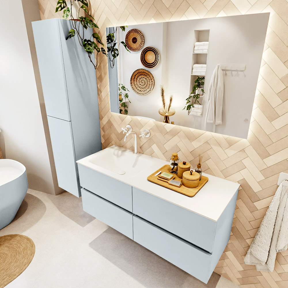 Ya sea que elija un color o un acabado de madera, un mueble de baño a medida, con o sin agujeros para grifos, el conjunto de muebles de baño Vica lo tiene todo. Con la serie Vica, puede elegir entre 3 modelos de lavabos: CLOUD y MOON en Solid Surface, con opciones de lavabo a la derecha, izquierda, en el medio o doble, y con o sin agujeros para grifos. También está el lavabo de cerámica DENIA con opciones en el medio y doble. El conjunto de muebles de baño Vica está disponible en una amplia gama de tamaños estándar, desde 60 cm hasta 200 cm, que aumentan en incrementos de 10 cm. El mueble de baño Vica está disponible en hasta 25 colores, incluyendo nuestros colores especiales Oro y Plata. Si no encuentra el tamaño o color ideal, siempre es posible hacer un pedido a medida. También puede coordinar su baño completo con columnas, bañeras, nichos y accesorios, todos en el mismo color. Con el conjunto de muebles de baño Vica, tendrá un mueble fantástico que completa su baño.