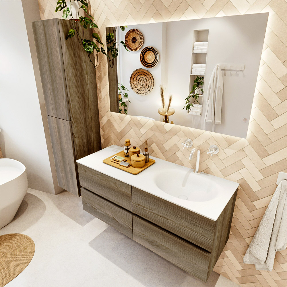 Ya sea que elija un color o un acabado de madera, un mueble de baño a medida, con o sin agujeros para grifos, el conjunto de muebles de baño Vica lo tiene todo. Con la serie Vica, puede elegir entre 3 modelos de lavabos: CLOUD y MOON en Solid Surface, con opciones de lavabo a la derecha, izquierda, en el medio o doble, y con o sin agujeros para grifos. También está el lavabo de cerámica DENIA con opciones en el medio y doble. El conjunto de muebles de baño Vica está disponible en una amplia gama de tamaños estándar, desde 60 cm hasta 200 cm, que aumentan en incrementos de 10 cm. El mueble de baño Vica está disponible en hasta 25 colores, incluyendo nuestros colores especiales Oro y Plata. Si no encuentra el tamaño o color ideal, siempre es posible hacer un pedido a medida. También puede coordinar su baño completo con columnas, bañeras, nichos y accesorios, todos en el mismo color. Con el conjunto de muebles de baño Vica, tendrá un mueble fantástico que completa su baño.
