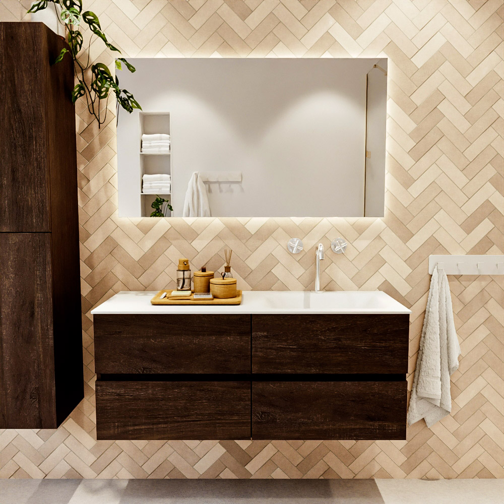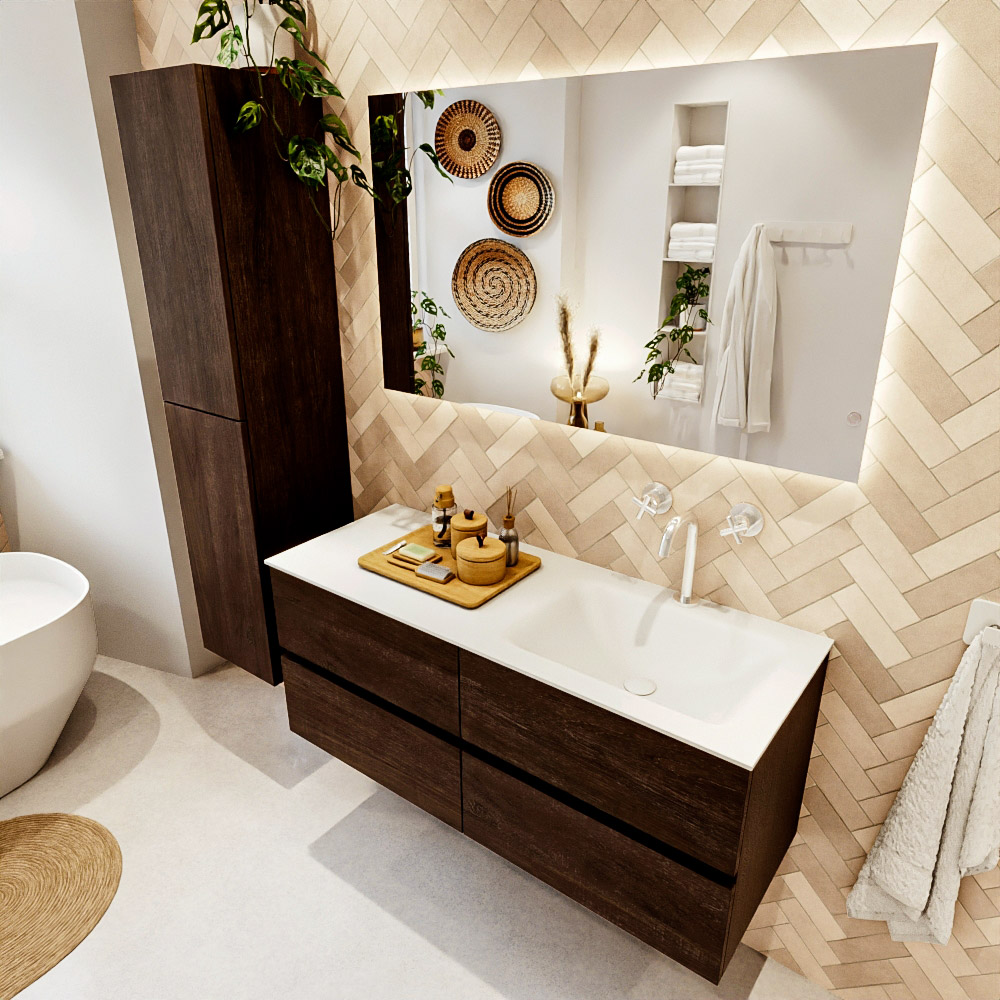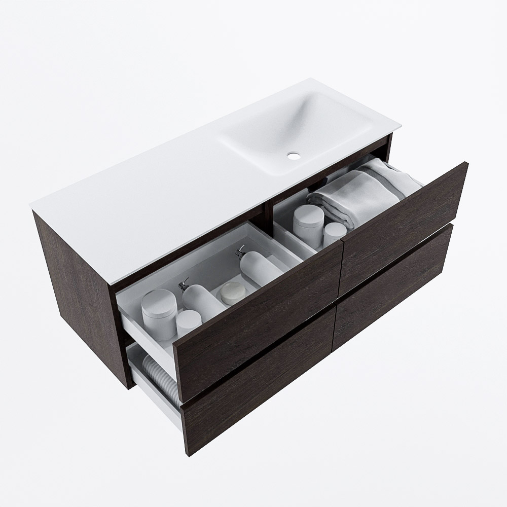 MONDIAZ VICA 120cm mueble de baño Dark Brown 4 cajones. Lavabo CLOUD Derecho 1 orificio, color Talc.