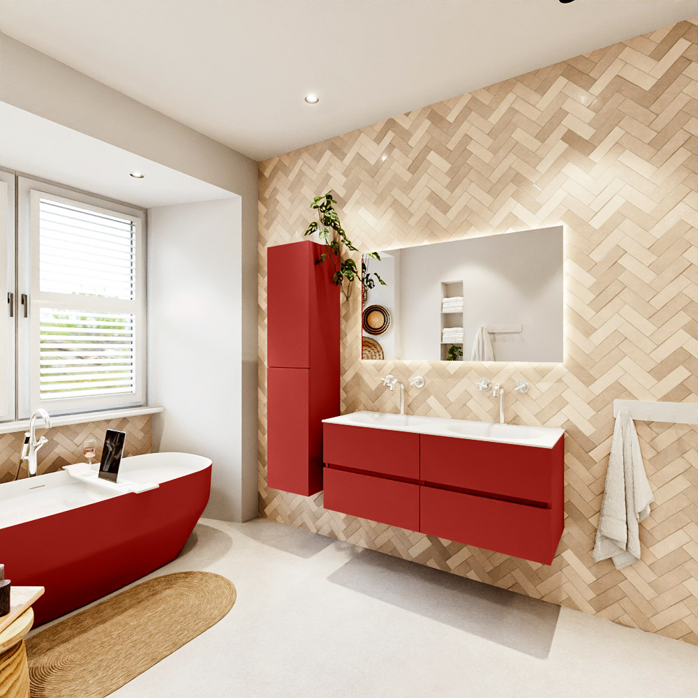 En español: Ya sea que elija un color o un acabado de madera, un mueble de baño a medida, con o sin agujeros para grifos, el conjunto de muebles de baño Vica lo tiene todo. Con la serie Vica, puede elegir entre 3 modelos de lavabos: CLOUD y MOON en Solid Surface, con opciones de lavabo a la derecha, izquierda, en el medio o doble, y con o sin agujeros para grifos. También está el lavabo de cerámica DENIA con opciones en el medio y doble. El conjunto de muebles de baño Vica está disponible en una amplia gama de tamaños estándar, desde 60 cm hasta 200 cm, que aumentan en incrementos de 10 cm. El mueble de baño Vica está disponible en hasta 25 colores, incluyendo nuestros colores especiales Oro y Plata. Si no encuentra el tamaño o color ideal, siempre es posible hacer un pedido a medida. También puede coordinar su baño completo con columnas, bañeras, nichos y accesorios, todos en el mismo color. Con el conjunto de muebles de baño Vica, tendrá un mueble fantástico que completa su baño.