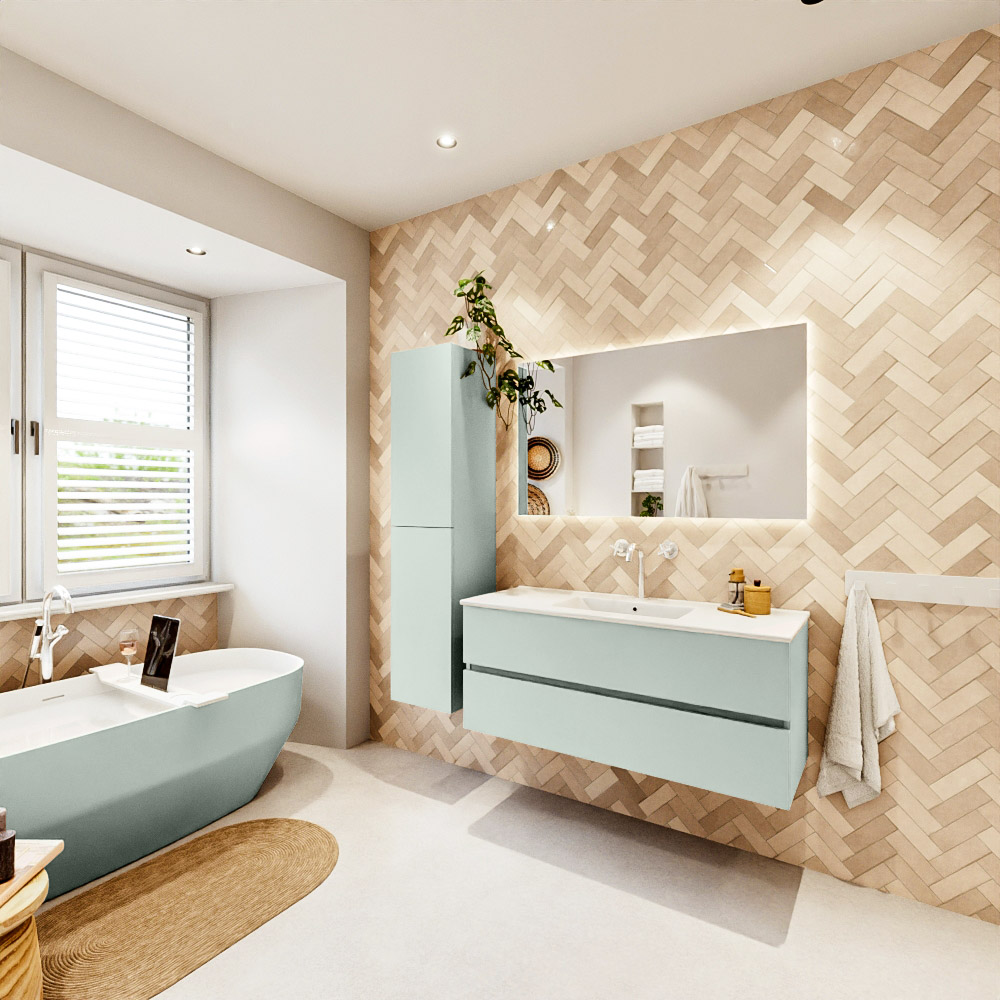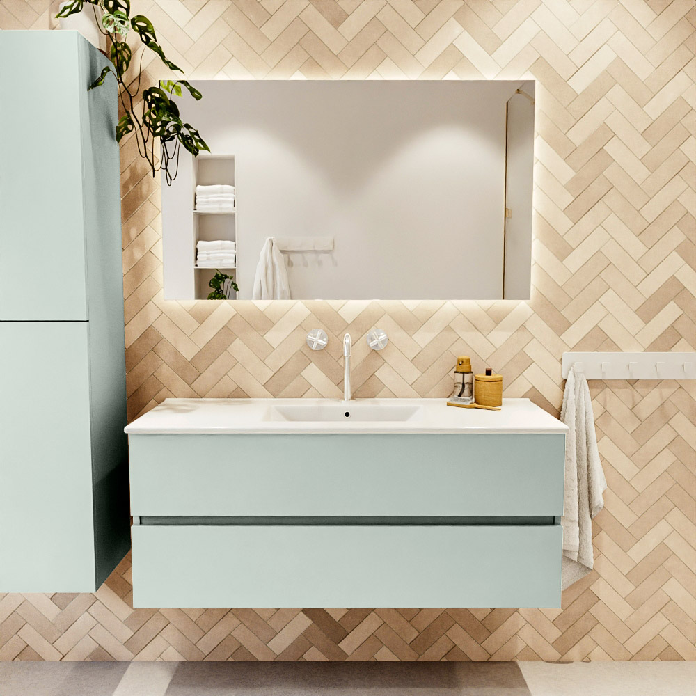 En español: Ya sea que elija un color o un acabado de madera, un mueble de baño a medida, con o sin agujeros para grifos, el conjunto de muebles de baño Vica lo tiene todo. Con la serie Vica, puede elegir entre 3 modelos de lavabos: CLOUD y MOON en Solid Surface, con opciones de lavabo a la derecha, izquierda, en el medio o doble, y con o sin agujeros para grifos. También está el lavabo de cerámica DENIA con opciones en el medio y doble. El conjunto de muebles de baño Vica está disponible en una amplia gama de tamaños estándar, desde 60 cm hasta 200 cm, que aumentan en incrementos de 10 cm. El mueble de baño Vica está disponible en hasta 25 colores, incluyendo nuestros colores especiales Oro y Plata. Si no encuentra el tamaño o color ideal, siempre es posible hacer un pedido a medida. También puede coordinar su baño completo con columnas, bañeras, nichos y accesorios, todos en el mismo color. Con el conjunto de muebles de baño Vica, tendrá un mueble fantástico que completa su baño.