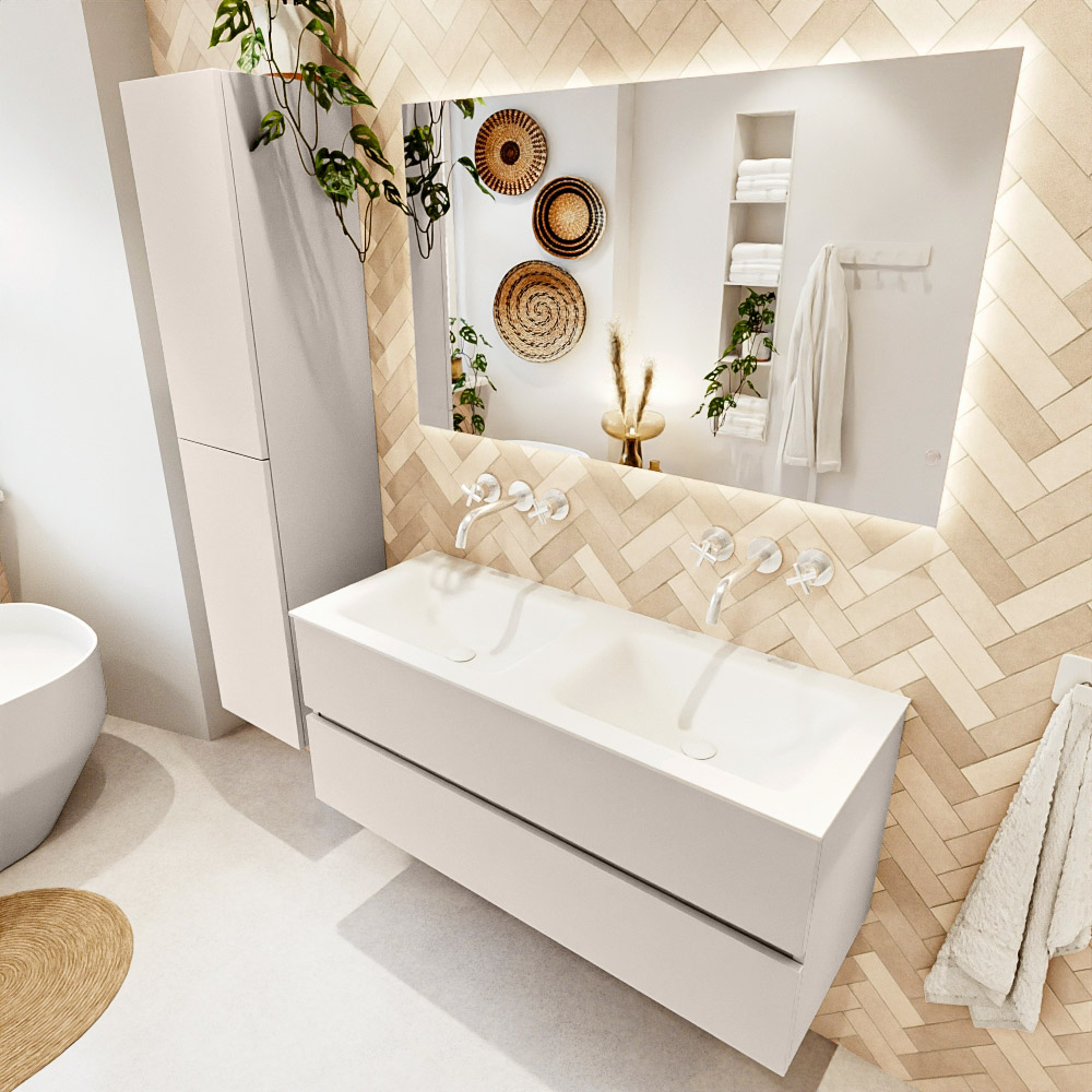 En español: Ya sea que elija un color o un acabado de madera, un mueble de baño a medida, con o sin agujeros para grifos, el conjunto de muebles de baño Vica lo tiene todo. Con la serie Vica, puede elegir entre 3 modelos de lavabos: CLOUD y MOON en Solid Surface, con opciones de lavabo a la derecha, izquierda, en el medio o doble, y con o sin agujeros para grifos. También está el lavabo de cerámica DENIA con opciones en el medio y doble. El conjunto de muebles de baño Vica está disponible en una amplia gama de tamaños estándar, desde 60 cm hasta 200 cm, que aumentan en incrementos de 10 cm. El mueble de baño Vica está disponible en hasta 25 colores, incluyendo nuestros colores especiales Oro y Plata. Si no encuentra el tamaño o color ideal, siempre es posible hacer un pedido a medida. También puede coordinar su baño completo con columnas, bañeras, nichos y accesorios, todos en el mismo color. Con el conjunto de muebles de baño Vica, tendrá un mueble fantástico que completa su baño.