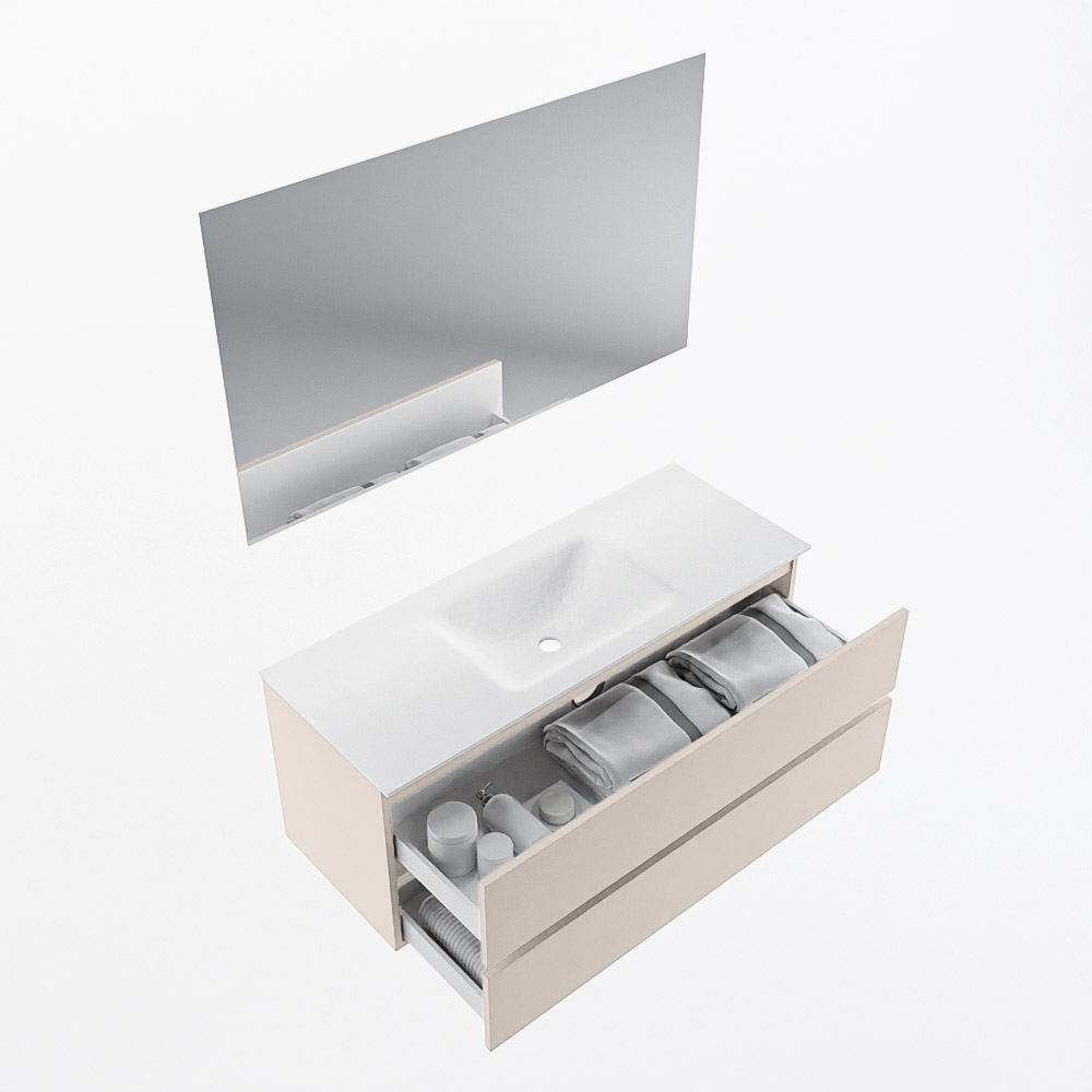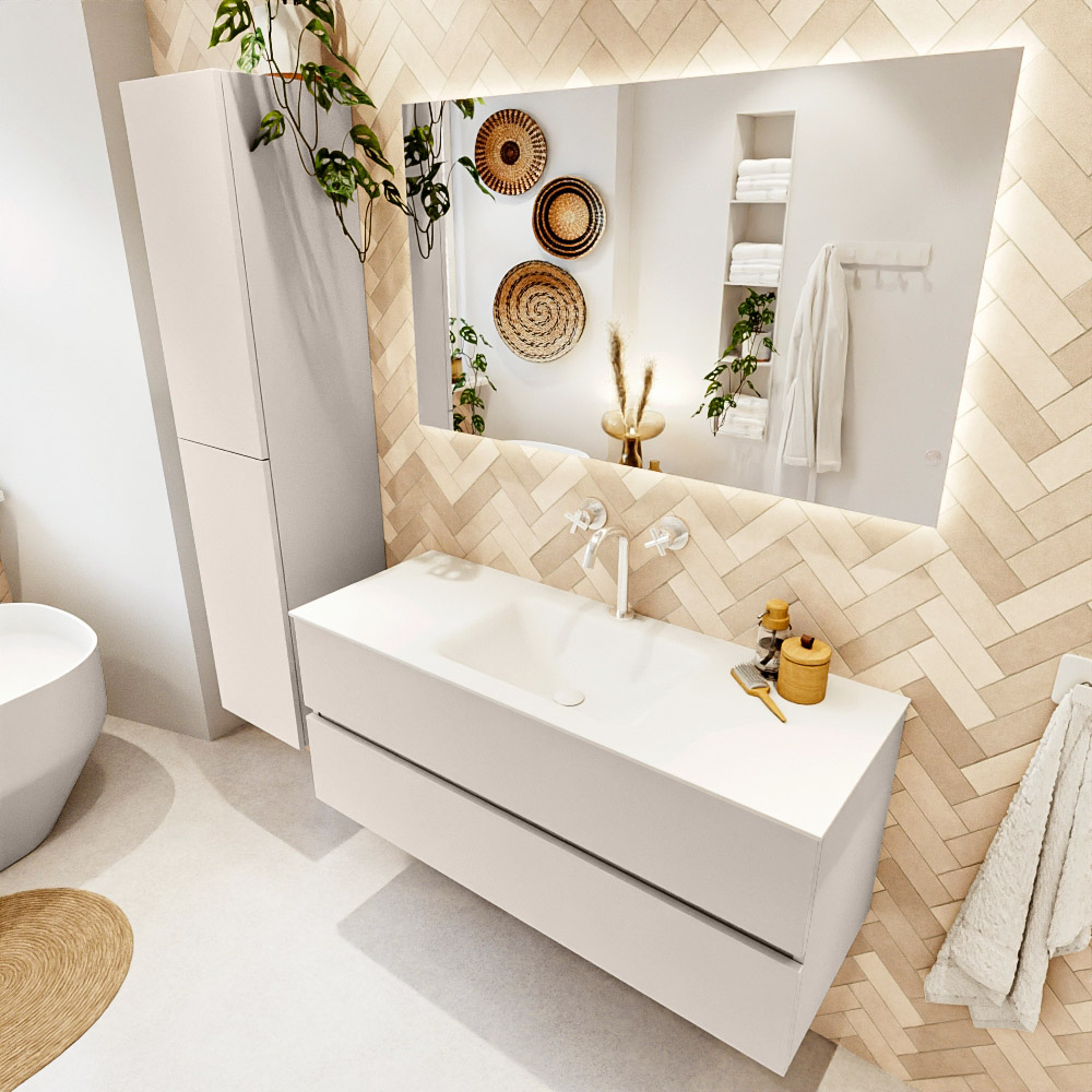 En español: Ya sea que elija un color o un acabado de madera, un mueble de baño a medida, con o sin agujeros para grifos, el conjunto de muebles de baño Vica lo tiene todo. Con la serie Vica, puede elegir entre 3 modelos de lavabos: CLOUD y MOON en Solid Surface, con opciones de lavabo a la derecha, izquierda, en el medio o doble, y con o sin agujeros para grifos. También está el lavabo de cerámica DENIA con opciones en el medio y doble. El conjunto de muebles de baño Vica está disponible en una amplia gama de tamaños estándar, desde 60 cm hasta 200 cm, que aumentan en incrementos de 10 cm. El mueble de baño Vica está disponible en hasta 25 colores, incluyendo nuestros colores especiales Oro y Plata. Si no encuentra el tamaño o color ideal, siempre es posible hacer un pedido a medida. También puede coordinar su baño completo con columnas, bañeras, nichos y accesorios, todos en el mismo color. Con el conjunto de muebles de baño Vica, tendrá un mueble fantástico que completa su baño.