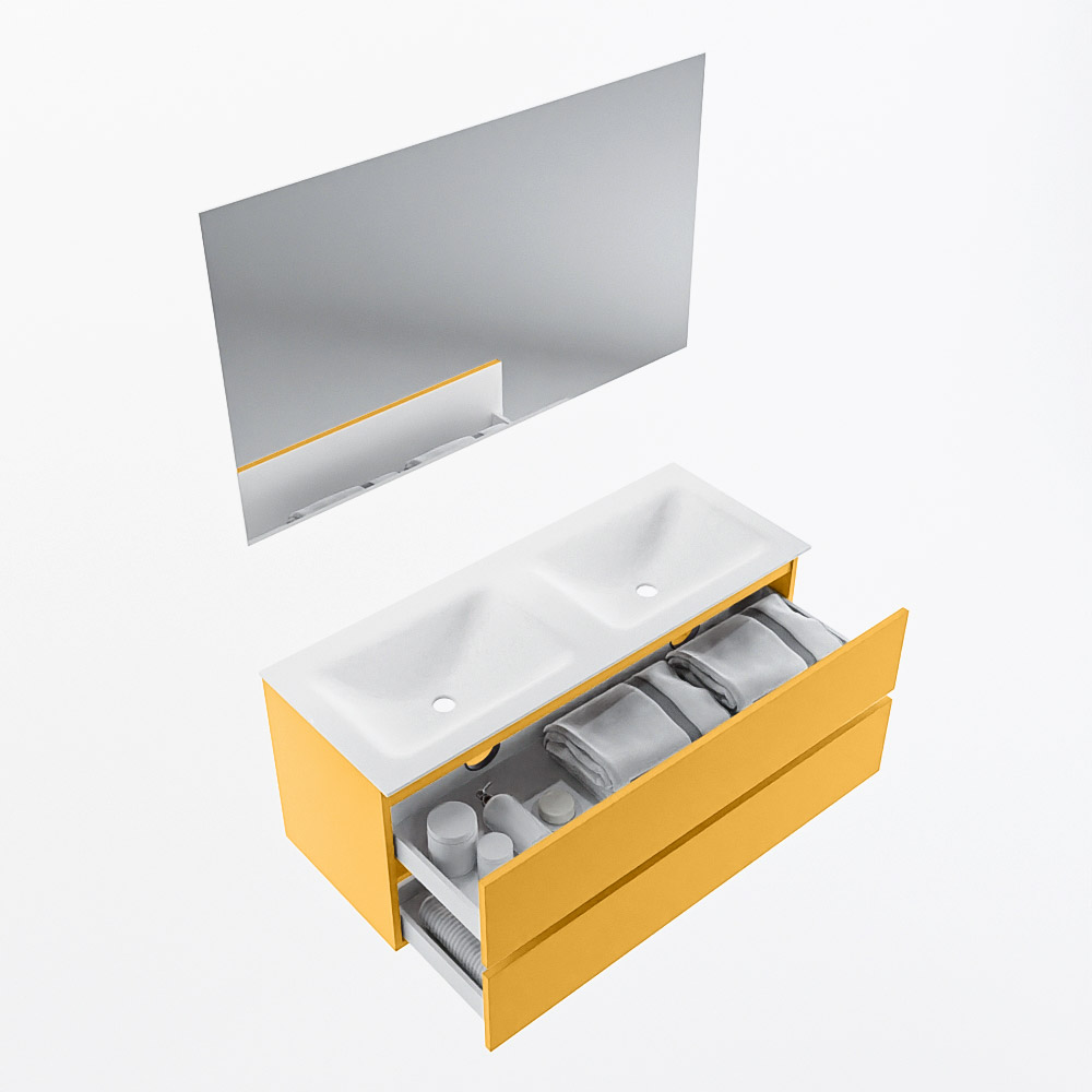 En español: Ya sea que elija un color o un acabado de madera, un mueble de baño a medida, con o sin agujeros para grifos, el conjunto de muebles de baño Vica lo tiene todo. Con la serie Vica, puede elegir entre 3 modelos de lavabos: CLOUD y MOON en Solid Surface, con opciones de lavabo a la derecha, izquierda, en el medio o doble, y con o sin agujeros para grifos. También está el lavabo de cerámica DENIA con opciones en el medio y doble. El conjunto de muebles de baño Vica está disponible en una amplia gama de tamaños estándar, desde 60 cm hasta 200 cm, que aumentan en incrementos de 10 cm. El mueble de baño Vica está disponible en hasta 25 colores, incluyendo nuestros colores especiales Oro y Plata. Si no encuentra el tamaño o color ideal, siempre es posible hacer un pedido a medida. También puede coordinar su baño completo con columnas, bañeras, nichos y accesorios, todos en el mismo color. Con el conjunto de muebles de baño Vica, tendrá un mueble fantástico que completa su baño.