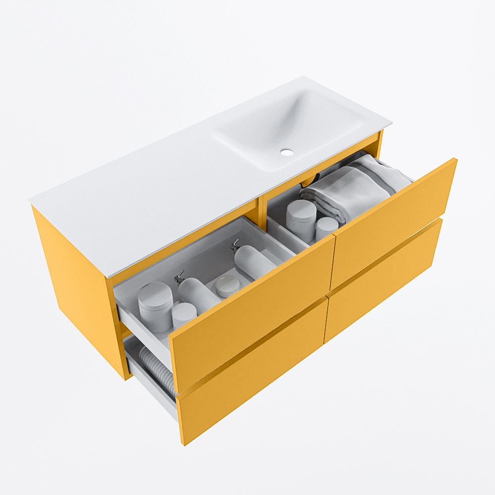 Ya sea que elija un color o un acabado de madera, un mueble de baño a medida, con o sin agujeros para grifos, el conjunto de muebles de baño Vica lo tiene todo. Con la serie Vica, puede elegir entre 3 modelos de lavabos: CLOUD y MOON en Solid Surface, con opciones de lavabo a la derecha, izquierda, en el medio o doble, y con o sin agujeros para grifos. También está el lavabo de cerámica DENIA con opciones en el medio y doble. El conjunto de muebles de baño Vica está disponible en una amplia gama de tamaños estándar, desde 60 cm hasta 200 cm, que aumentan en incrementos de 10 cm. El mueble de baño Vica está disponible en hasta 25 colores, incluyendo nuestros colores especiales Oro y Plata. Si no encuentra el tamaño o color ideal, siempre es posible hacer un pedido a medida. También puede coordinar su baño completo con columnas, bañeras, nichos y accesorios, todos en el mismo color. Con el conjunto de muebles de baño Vica, tendrá un mueble fantástico que completa su baño.