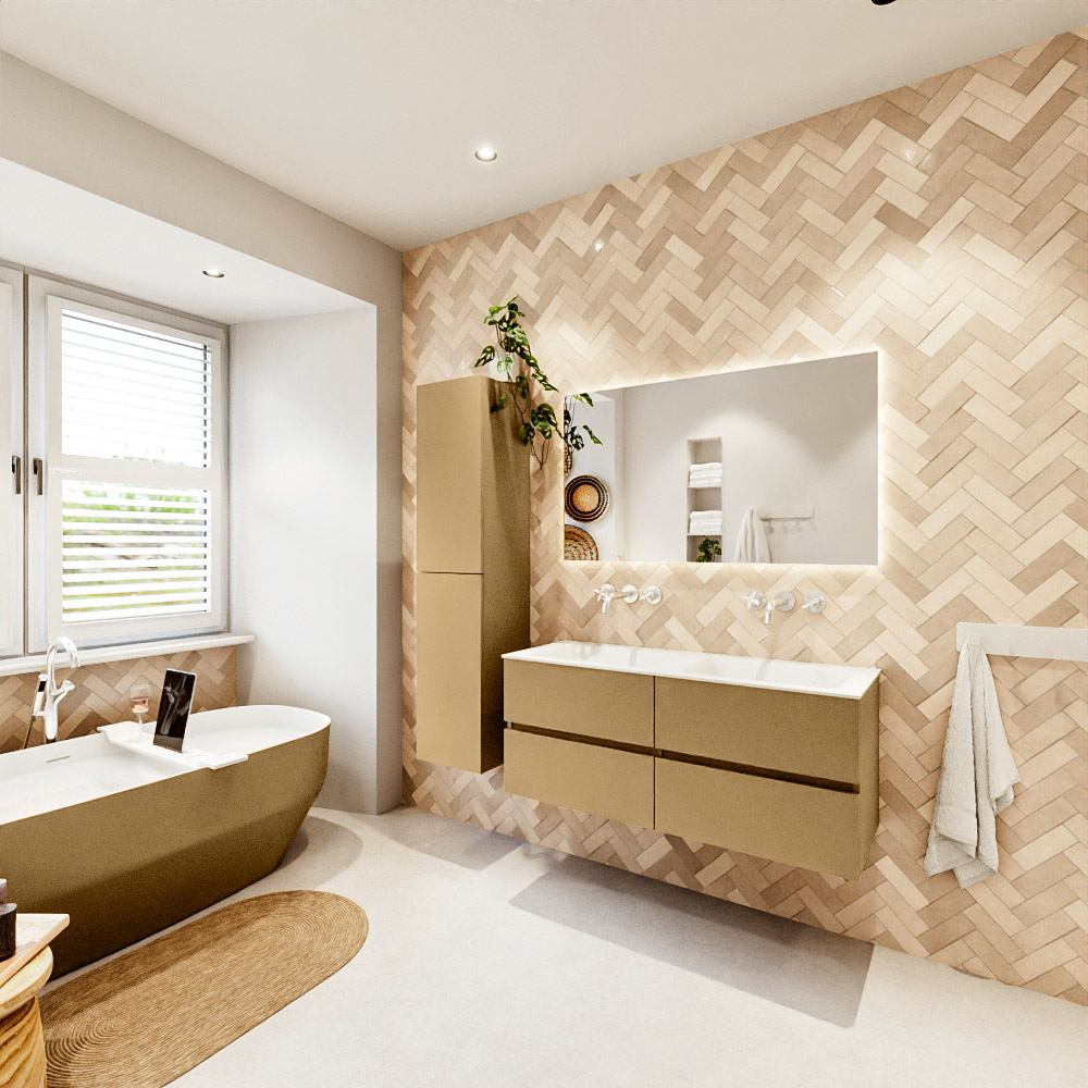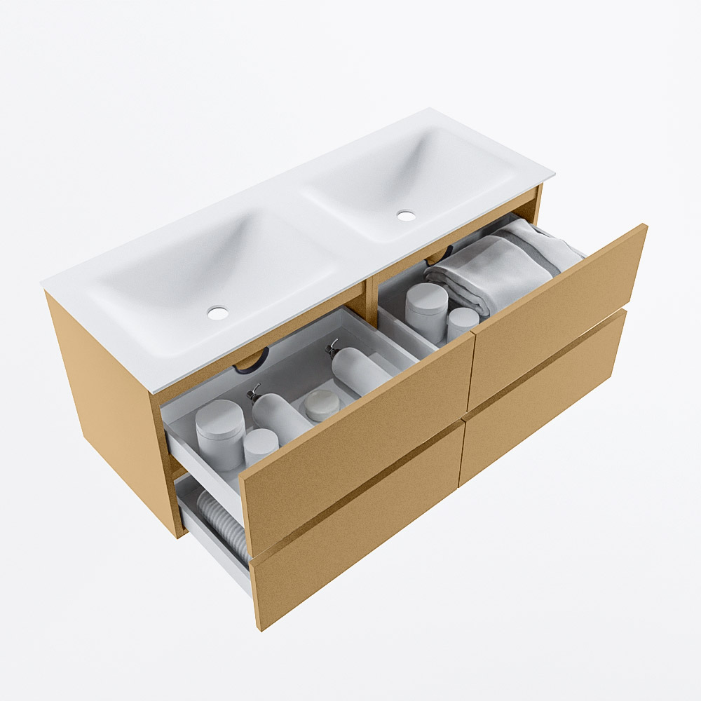 MONDIAZ VICA 120cm mueble de baño Oro 4 cajones. Lavabo CLOUD Doble sin orificio, color Talc.