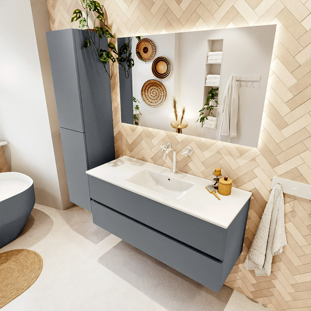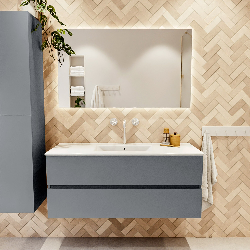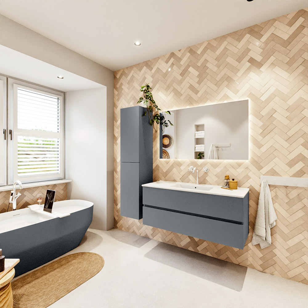 En español: Ya sea que elija un color o un acabado de madera, un mueble de baño a medida, con o sin agujeros para grifos, el conjunto de muebles de baño Vica lo tiene todo. Con la serie Vica, puede elegir entre 3 modelos de lavabos: CLOUD y MOON en Solid Surface, con opciones de lavabo a la derecha, izquierda, en el medio o doble, y con o sin agujeros para grifos. También está el lavabo de cerámica DENIA con opciones en el medio y doble. El conjunto de muebles de baño Vica está disponible en una amplia gama de tamaños estándar, desde 60 cm hasta 200 cm, que aumentan en incrementos de 10 cm. El mueble de baño Vica está disponible en hasta 25 colores, incluyendo nuestros colores especiales Oro y Plata. Si no encuentra el tamaño o color ideal, siempre es posible hacer un pedido a medida. También puede coordinar su baño completo con columnas, bañeras, nichos y accesorios, todos en el mismo color. Con el conjunto de muebles de baño Vica, tendrá un mueble fantástico que completa su baño.