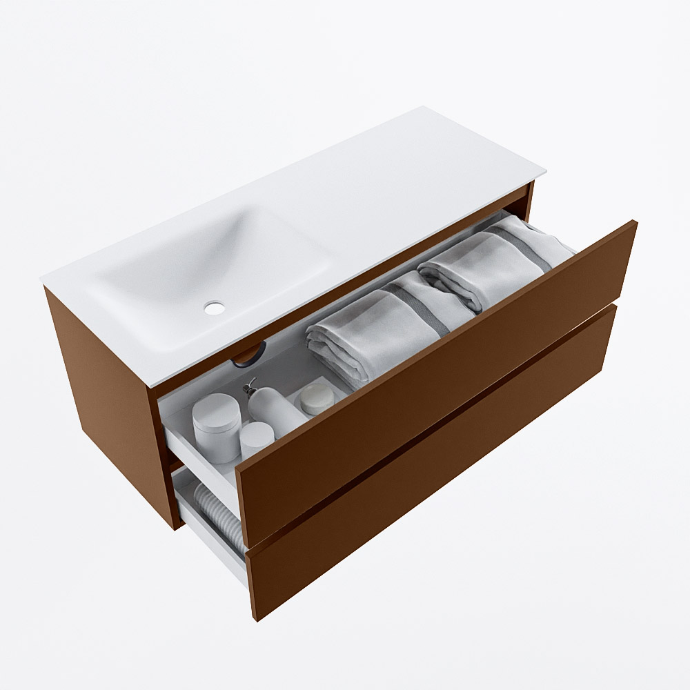 MONDIAZ VICA 120cm mueble de baño Rust 2 cajones. Lavabo CLOUD Izquierda 1 orificio, color Talc.