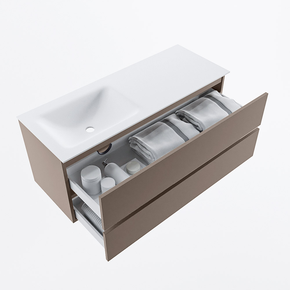 Ya sea que elija un color o un acabado de madera, un mueble de baño a medida, con o sin agujeros para grifos, el conjunto de muebles de baño Vica lo tiene todo. Con la serie Vica, puede elegir entre 3 modelos de lavabos: CLOUD y MOON en Solid Surface, con opciones de lavabo a la derecha, izquierda, en el medio o doble, y con o sin agujeros para grifos. También está el lavabo de cerámica DENIA con opciones en el medio y doble. El conjunto de muebles de baño Vica está disponible en una amplia gama de tamaños estándar, desde 60 cm hasta 200 cm, que aumentan en incrementos de 10 cm. El mueble de baño Vica está disponible en hasta 25 colores, incluyendo nuestros colores especiales Oro y Plata. Si no encuentra el tamaño o color ideal, siempre es posible hacer un pedido a medida. También puede coordinar su baño completo con columnas, bañeras, nichos y accesorios, todos en el mismo color. Con el conjunto de muebles de baño Vica, tendrá un mueble fantástico que completa su baño.