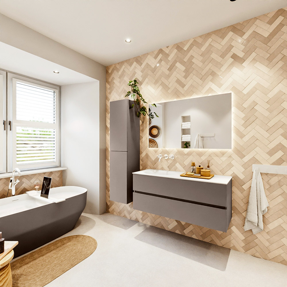 Ya sea que elija un color o un acabado de madera, un mueble de baño a medida, con o sin agujeros para grifos, el conjunto de muebles de baño Vica lo tiene todo. Con la serie Vica, puede elegir entre 3 modelos de lavabos: CLOUD y MOON en Solid Surface, con opciones de lavabo a la derecha, izquierda, en el medio o doble, y con o sin agujeros para grifos. También está el lavabo de cerámica DENIA con opciones en el medio y doble. El conjunto de muebles de baño Vica está disponible en una amplia gama de tamaños estándar, desde 60 cm hasta 200 cm, que aumentan en incrementos de 10 cm. El mueble de baño Vica está disponible en hasta 25 colores, incluyendo nuestros colores especiales Oro y Plata. Si no encuentra el tamaño o color ideal, siempre es posible hacer un pedido a medida. También puede coordinar su baño completo con columnas, bañeras, nichos y accesorios, todos en el mismo color. Con el conjunto de muebles de baño Vica, tendrá un mueble fantástico que completa su baño.