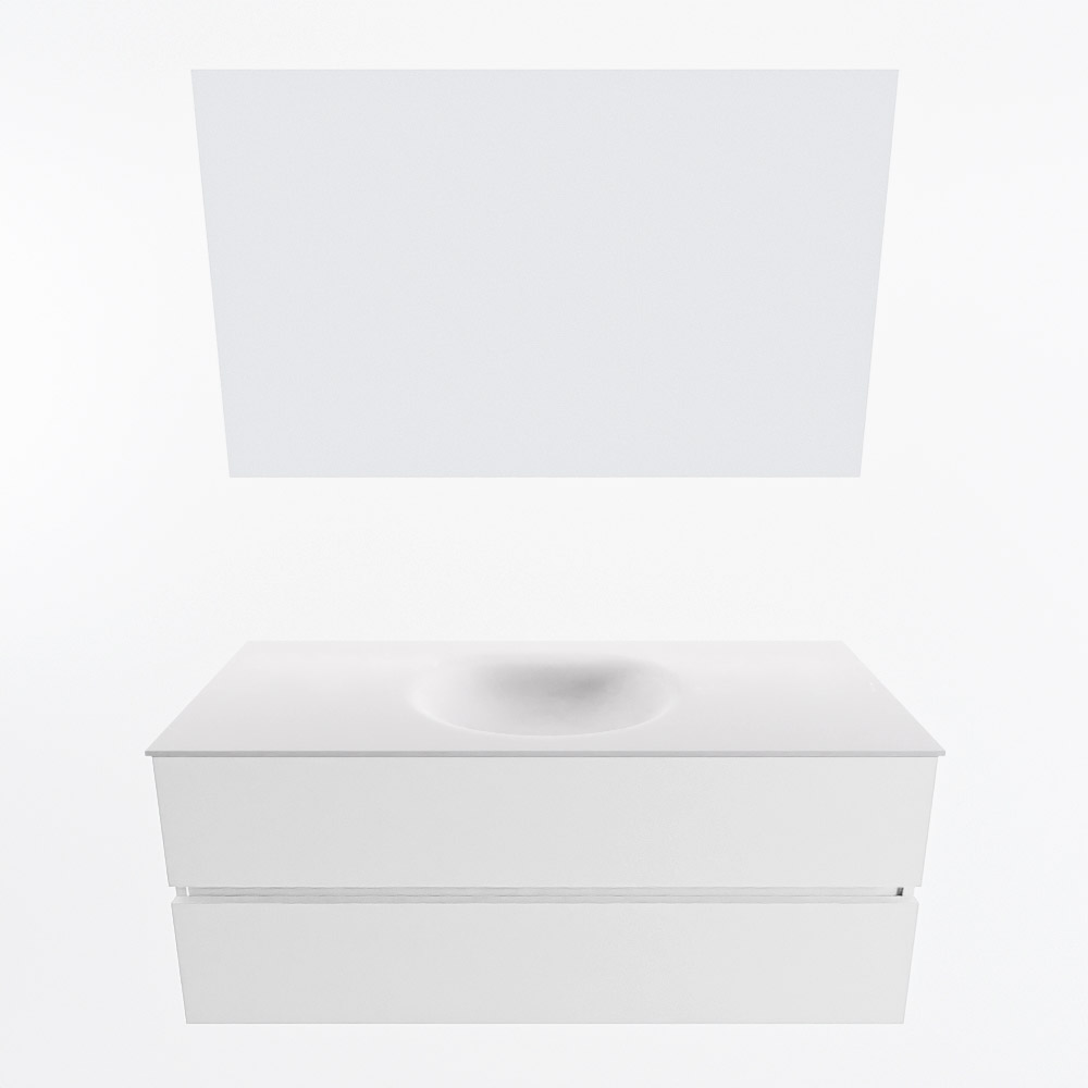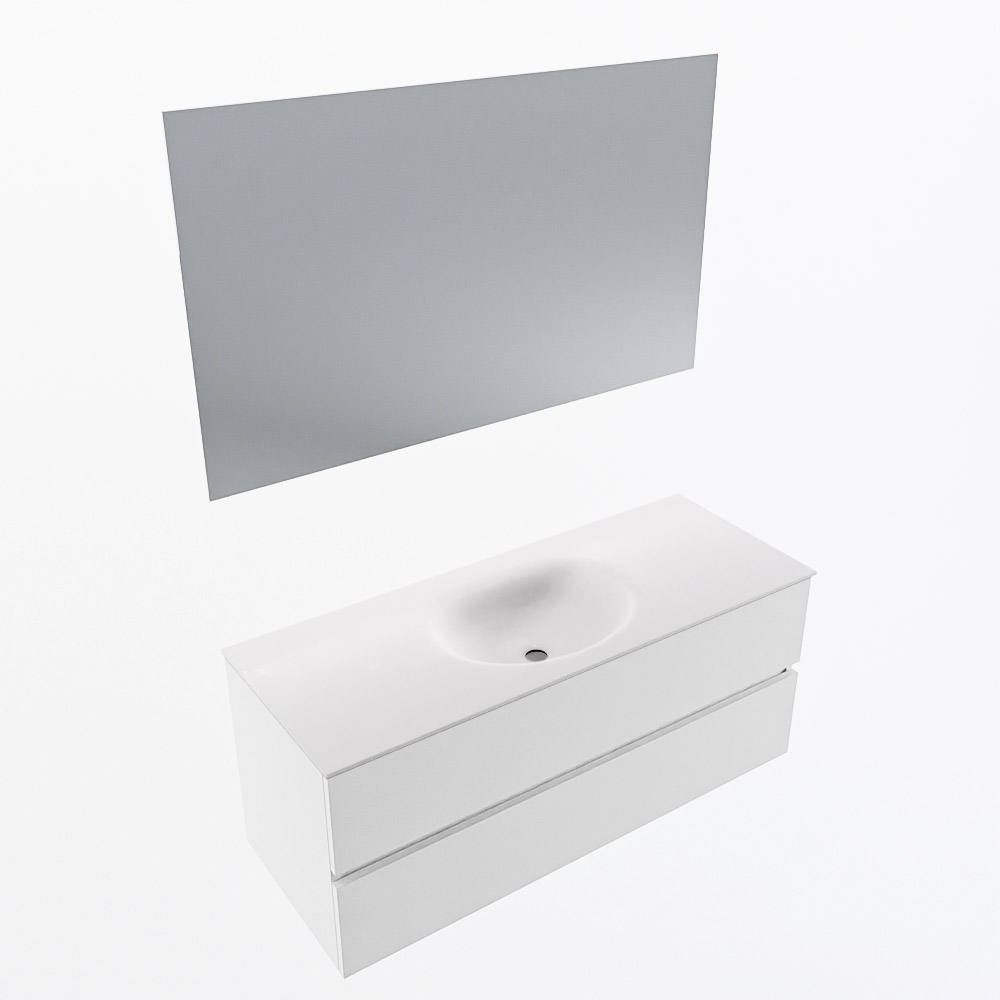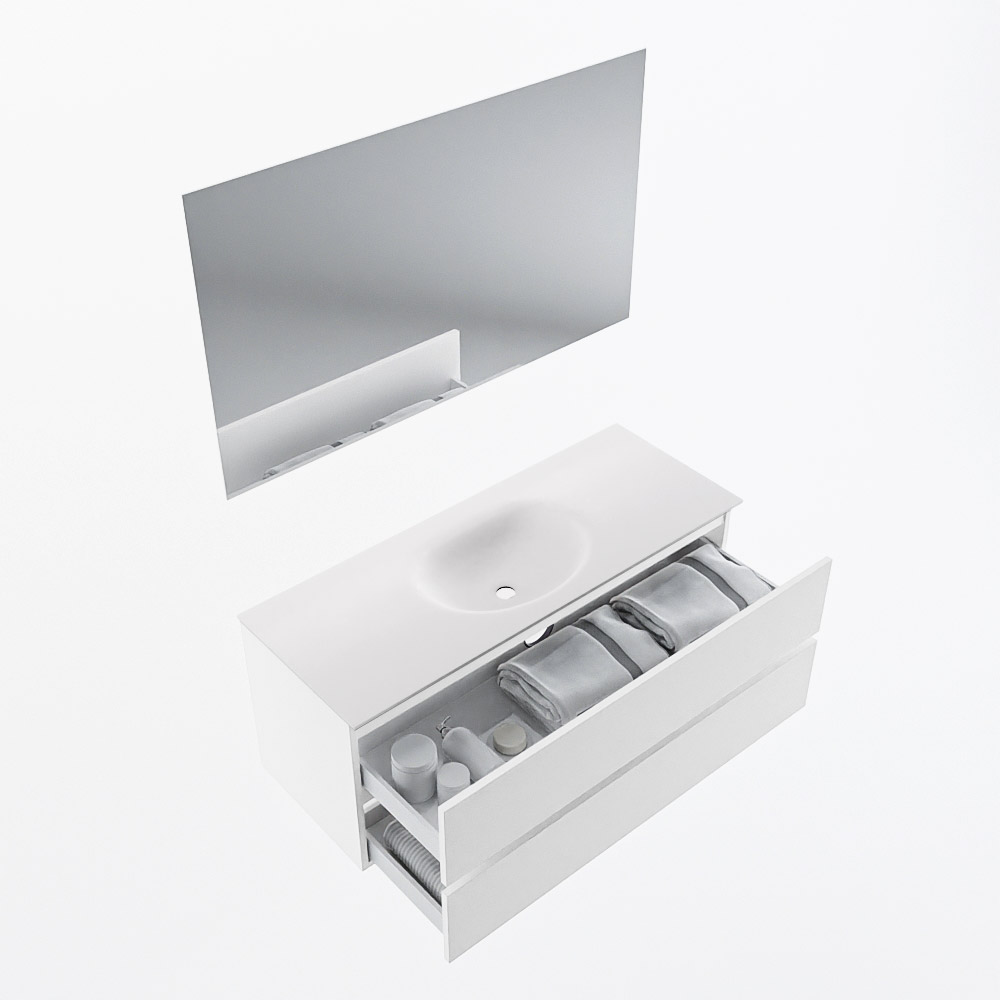 MONDIAZ VICA 120cm mueble de baño Talc 2 cajones. Lavabo MOON Centro 1 orificio color Talc con espejo LED.