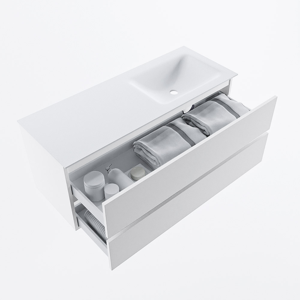 Ya sea que elija un color o un acabado de madera, un mueble de baño a medida, con o sin agujeros para grifos, el conjunto de muebles de baño Vica lo tiene todo. Con la serie Vica, puede elegir entre 3 modelos de lavabos: CLOUD y MOON en Solid Surface, con opciones de lavabo a la derecha, izquierda, en el medio o doble, y con o sin agujeros para grifos. También está el lavabo de cerámica DENIA con opciones en el medio y doble. El conjunto de muebles de baño Vica está disponible en una amplia gama de tamaños estándar, desde 60 cm hasta 200 cm, que aumentan en incrementos de 10 cm. El mueble de baño Vica está disponible en hasta 25 colores, incluyendo nuestros colores especiales Oro y Plata. Si no encuentra el tamaño o color ideal, siempre es posible hacer un pedido a medida. También puede coordinar su baño completo con columnas, bañeras, nichos y accesorios, todos en el mismo color. Con el conjunto de muebles de baño Vica, tendrá un mueble fantástico que completa su baño.