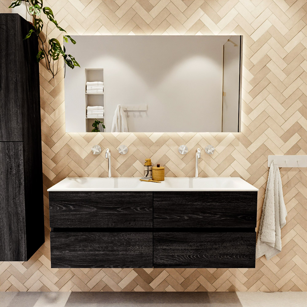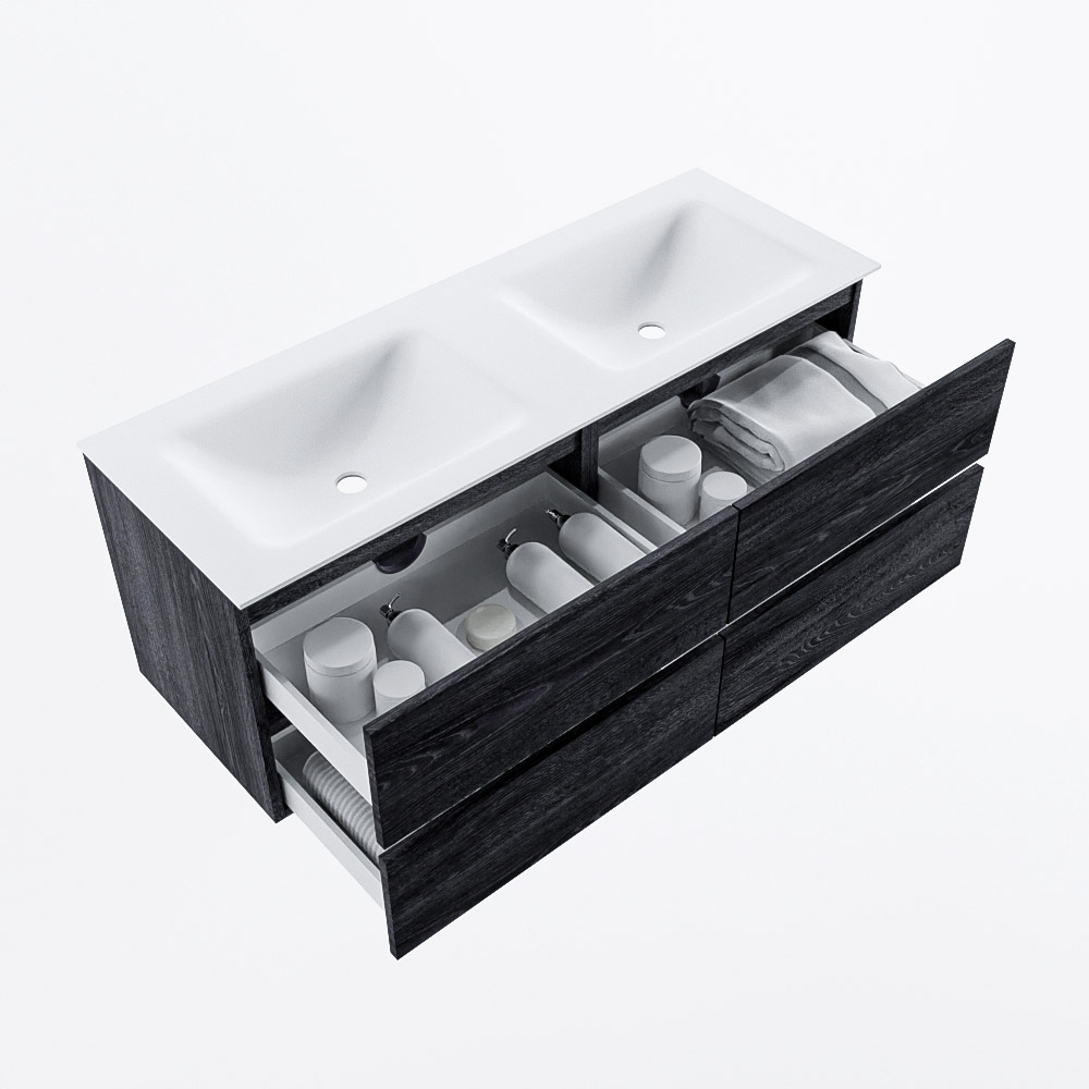 MONDIAZ VICA 130cm mueble de baño Antracite 4 cajones. Lavabo CLOUD Doble 2 orificios, color Talc.