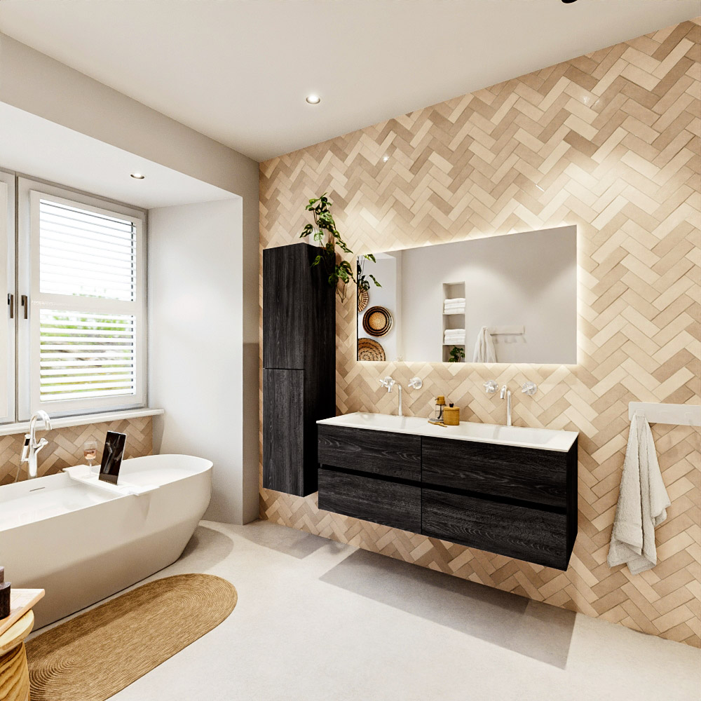 Ya sea que elija un color o un acabado de madera, un mueble de baño a medida, con o sin agujeros para grifos, el conjunto de muebles de baño Vica lo tiene todo. Con la serie Vica, puede elegir entre 3 modelos de lavabos: CLOUD y MOON en Solid Surface, con opciones de lavabo a la derecha, izquierda, en el medio o doble, y con o sin agujeros para grifos. También está el lavabo de cerámica DENIA con opciones en el medio y doble. El conjunto de muebles de baño Vica está disponible en una amplia gama de tamaños estándar, desde 60 cm hasta 200 cm, que aumentan en incrementos de 10 cm. El mueble de baño Vica está disponible en hasta 25 colores, incluyendo nuestros colores especiales Oro y Plata. Si no encuentra el tamaño o color ideal, siempre es posible hacer un pedido a medida. También puede coordinar su baño completo con columnas, bañeras, nichos y accesorios, todos en el mismo color. Con el conjunto de muebles de baño Vica, tendrá un mueble fantástico que completa su baño.
