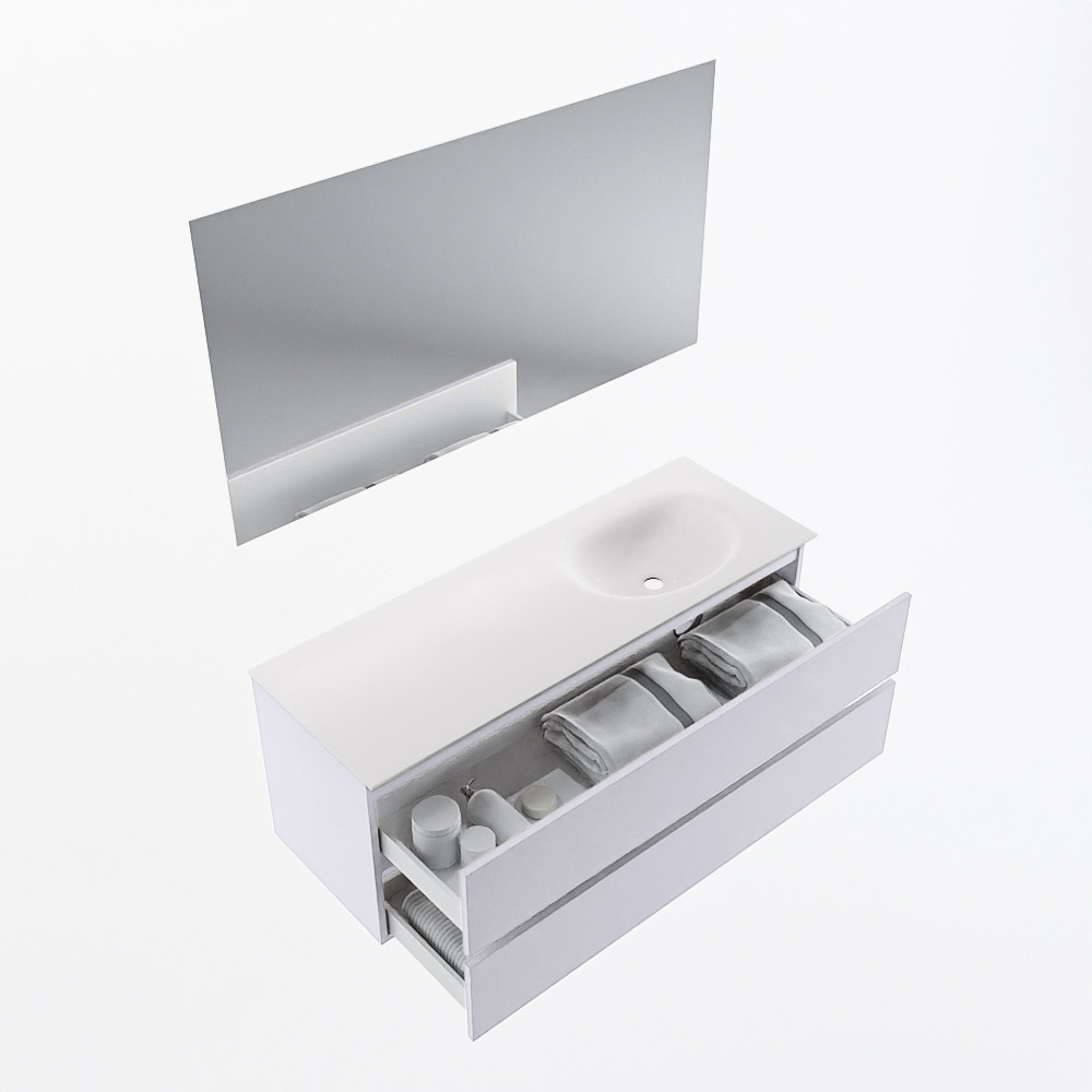 En español: Ya sea que elija un color o un acabado de madera, un mueble de baño a medida, con o sin agujeros para grifos, el conjunto de muebles de baño Vica lo tiene todo. Con la serie Vica, puede elegir entre 3 modelos de lavabos: CLOUD y MOON en Solid Surface, con opciones de lavabo a la derecha, izquierda, en el medio o doble, y con o sin agujeros para grifos. También está el lavabo de cerámica DENIA con opciones en el medio y doble. El conjunto de muebles de baño Vica está disponible en una amplia gama de tamaños estándar, desde 60 cm hasta 200 cm, que aumentan en incrementos de 10 cm. El mueble de baño Vica está disponible en hasta 25 colores, incluyendo nuestros colores especiales Oro y Plata. Si no encuentra el tamaño o color ideal, siempre es posible hacer un pedido a medida. También puede coordinar su baño completo con columnas, bañeras, nichos y accesorios, todos en el mismo color. Con el conjunto de muebles de baño Vica, tendrá un mueble fantástico que completa su baño.