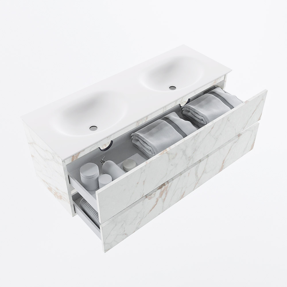 Ya sea que elija un color o un acabado de madera, un mueble de baño a medida, con o sin agujeros para grifos, el conjunto de muebles de baño Vica lo tiene todo. Con la serie Vica, puede elegir entre 3 modelos de lavabos: CLOUD y MOON en Solid Surface, con opciones de lavabo a la derecha, izquierda, en el medio o doble, y con o sin agujeros para grifos. También está el lavabo de cerámica DENIA con opciones en el medio y doble. El conjunto de muebles de baño Vica está disponible en una amplia gama de tamaños estándar, desde 60 cm hasta 200 cm, que aumentan en incrementos de 10 cm. El mueble de baño Vica está disponible en hasta 25 colores, incluyendo nuestros colores especiales Oro y Plata. Si no encuentra el tamaño o color ideal, siempre es posible hacer un pedido a medida. También puede coordinar su baño completo con columnas, bañeras, nichos y accesorios, todos en el mismo color. Con el conjunto de muebles de baño Vica, tendrá un mueble fantástico que completa su baño.