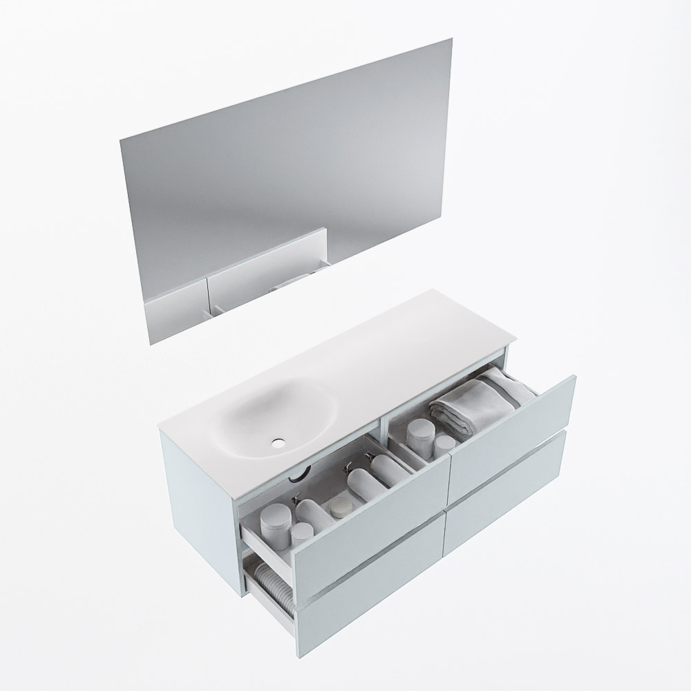 En español: Ya sea que elija un color o un acabado de madera, un mueble de baño a medida, con o sin agujeros para grifos, el conjunto de muebles de baño Vica lo tiene todo. Con la serie Vica, puede elegir entre 3 modelos de lavabos: CLOUD y MOON en Solid Surface, con opciones de lavabo a la derecha, izquierda, en el medio o doble, y con o sin agujeros para grifos. También está el lavabo de cerámica DENIA con opciones en el medio y doble. El conjunto de muebles de baño Vica está disponible en una amplia gama de tamaños estándar, desde 60 cm hasta 200 cm, que aumentan en incrementos de 10 cm. El mueble de baño Vica está disponible en hasta 25 colores, incluyendo nuestros colores especiales Oro y Plata. Si no encuentra el tamaño o color ideal, siempre es posible hacer un pedido a medida. También puede coordinar su baño completo con columnas, bañeras, nichos y accesorios, todos en el mismo color. Con el conjunto de muebles de baño Vica, tendrá un mueble fantástico que completa su baño.