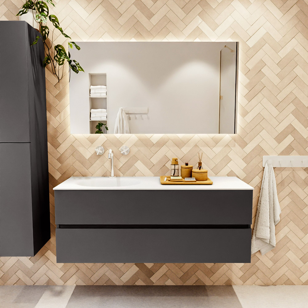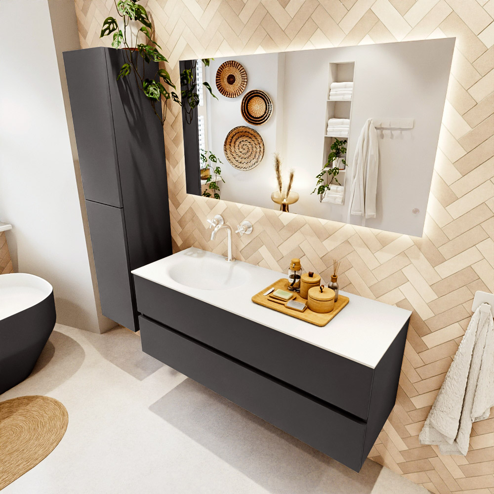 Ya sea que elija un color o un acabado de madera, un mueble de baño a medida, con o sin agujeros para grifos, el conjunto de muebles de baño Vica lo tiene todo. Con la serie Vica, puede elegir entre 3 modelos de lavabos: CLOUD y MOON en Solid Surface, con opciones de lavabo a la derecha, izquierda, en el medio o doble, y con o sin agujeros para grifos. También está el lavabo de cerámica DENIA con opciones en el medio y doble. El conjunto de muebles de baño Vica está disponible en una amplia gama de tamaños estándar, desde 60 cm hasta 200 cm, que aumentan en incrementos de 10 cm. El mueble de baño Vica está disponible en hasta 25 colores, incluyendo nuestros colores especiales Oro y Plata. Si no encuentra el tamaño o color ideal, siempre es posible hacer un pedido a medida. También puede coordinar su baño completo con columnas, bañeras, nichos y accesorios, todos en el mismo color. Con el conjunto de muebles de baño Vica, tendrá un mueble fantástico que completa su baño.