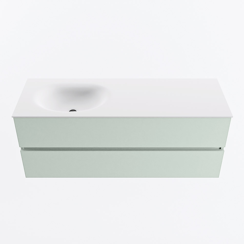 MONDIAZ VICA 130cm mueble de baño Greey 2 cajones. Lavabo MOON Izquierda sin orificio, color Talc.