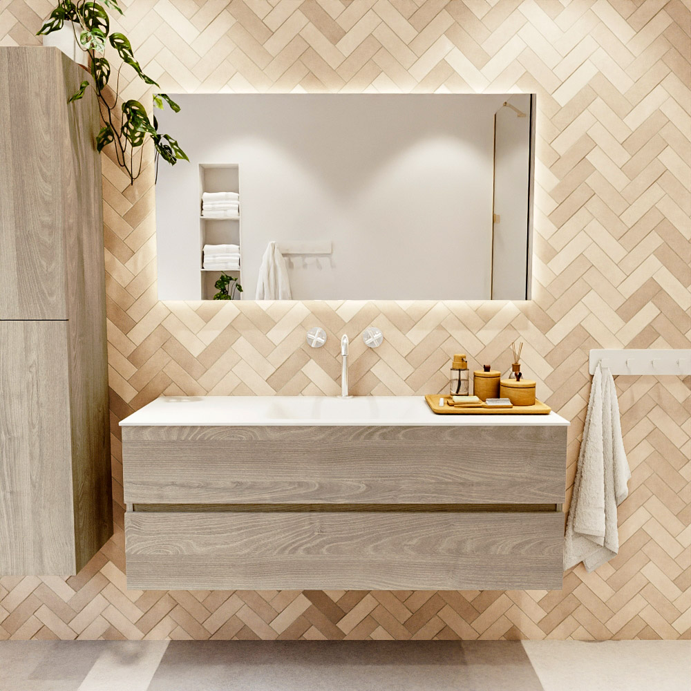 Ya sea que elija un color o un acabado de madera, un mueble de baño a medida, con o sin agujeros para grifos, el conjunto de muebles de baño Vica lo tiene todo. Con la serie Vica, puede elegir entre 3 modelos de lavabos: CLOUD y MOON en Solid Surface, con opciones de lavabo a la derecha, izquierda, en el medio o doble, y con o sin agujeros para grifos. También está el lavabo de cerámica DENIA con opciones en el medio y doble. El conjunto de muebles de baño Vica está disponible en una amplia gama de tamaños estándar, desde 60 cm hasta 200 cm, que aumentan en incrementos de 10 cm. El mueble de baño Vica está disponible en hasta 25 colores, incluyendo nuestros colores especiales Oro y Plata. Si no encuentra el tamaño o color ideal, siempre es posible hacer un pedido a medida. También puede coordinar su baño completo con columnas, bañeras, nichos y accesorios, todos en el mismo color. Con el conjunto de muebles de baño Vica, tendrá un mueble fantástico que completa su baño.
