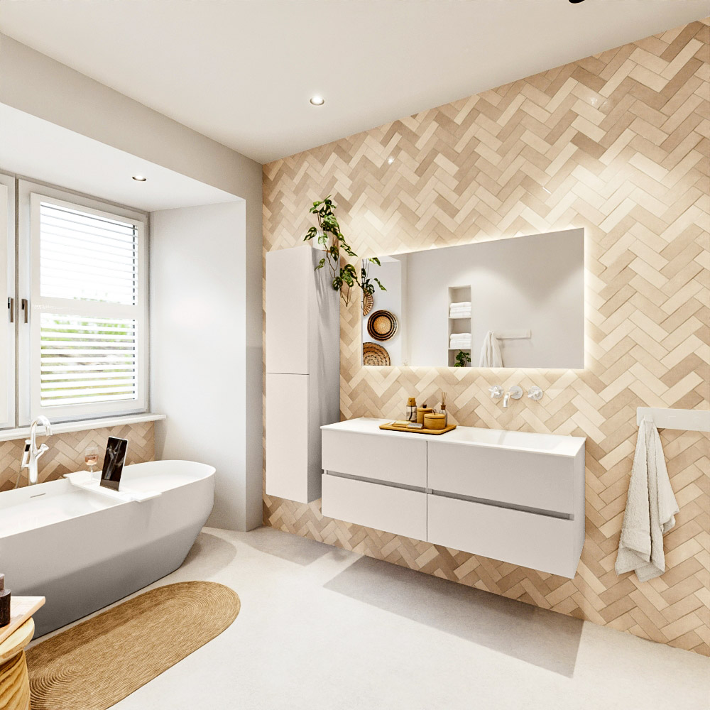 Ya sea que elija un color o un acabado de madera, un mueble de baño a medida, con o sin agujeros para grifos, el conjunto de muebles de baño Vica lo tiene todo. Con la serie Vica, puede elegir entre 3 modelos de lavabos: CLOUD y MOON en Solid Surface, con opciones de lavabo a la derecha, izquierda, en el medio o doble, y con o sin agujeros para grifos. También está el lavabo de cerámica DENIA con opciones en el medio y doble. El conjunto de muebles de baño Vica está disponible en una amplia gama de tamaños estándar, desde 60 cm hasta 200 cm, que aumentan en incrementos de 10 cm. El mueble de baño Vica está disponible en hasta 25 colores, incluyendo nuestros colores especiales Oro y Plata. Si no encuentra el tamaño o color ideal, siempre es posible hacer un pedido a medida. También puede coordinar su baño completo con columnas, bañeras, nichos y accesorios, todos en el mismo color. Con el conjunto de muebles de baño Vica, tendrá un mueble fantástico que completa su baño.