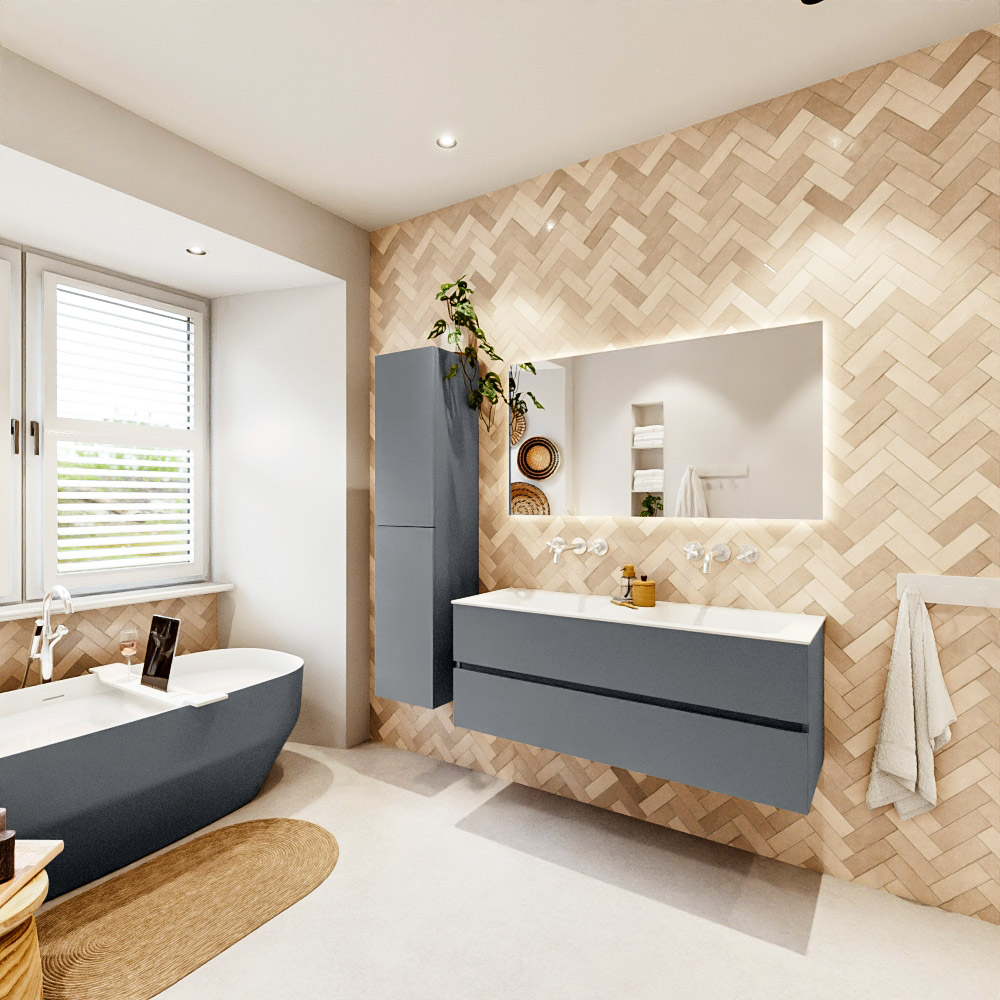 Ya sea que elija un color o un acabado de madera, un mueble de baño a medida, con o sin agujeros para grifos, el conjunto de muebles de baño Vica lo tiene todo. Con la serie Vica, puede elegir entre 3 modelos de lavabos: CLOUD y MOON en Solid Surface, con opciones de lavabo a la derecha, izquierda, en el medio o doble, y con o sin agujeros para grifos. También está el lavabo de cerámica DENIA con opciones en el medio y doble. El conjunto de muebles de baño Vica está disponible en una amplia gama de tamaños estándar, desde 60 cm hasta 200 cm, que aumentan en incrementos de 10 cm. El mueble de baño Vica está disponible en hasta 25 colores, incluyendo nuestros colores especiales Oro y Plata. Si no encuentra el tamaño o color ideal, siempre es posible hacer un pedido a medida. También puede coordinar su baño completo con columnas, bañeras, nichos y accesorios, todos en el mismo color. Con el conjunto de muebles de baño Vica, tendrá un mueble fantástico que completa su baño.