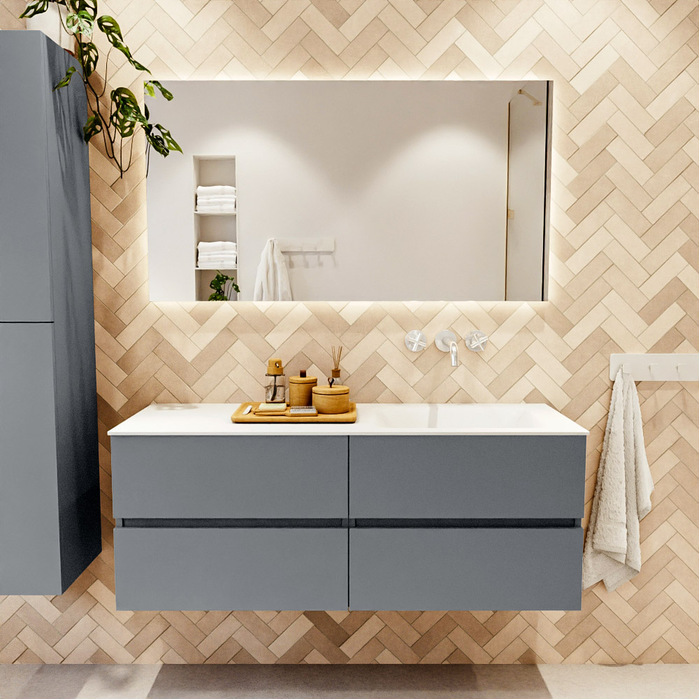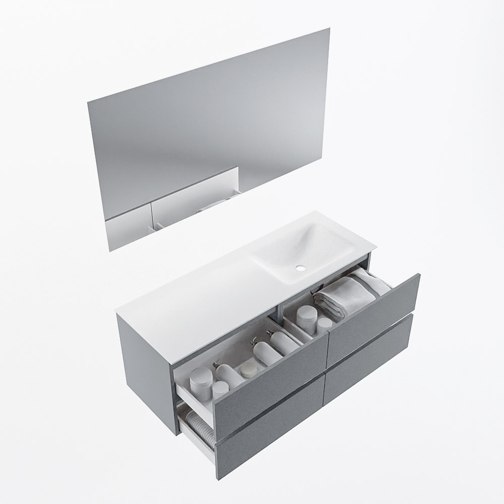En español: Ya sea que elija un color o un acabado de madera, un mueble de baño a medida, con o sin agujeros para grifos, el conjunto de muebles de baño Vica lo tiene todo. Con la serie Vica, puede elegir entre 3 modelos de lavabos: CLOUD y MOON en Solid Surface, con opciones de lavabo a la derecha, izquierda, en el medio o doble, y con o sin agujeros para grifos. También está el lavabo de cerámica DENIA con opciones en el medio y doble. El conjunto de muebles de baño Vica está disponible en una amplia gama de tamaños estándar, desde 60 cm hasta 200 cm, que aumentan en incrementos de 10 cm. El mueble de baño Vica está disponible en hasta 25 colores, incluyendo nuestros colores especiales Oro y Plata. Si no encuentra el tamaño o color ideal, siempre es posible hacer un pedido a medida. También puede coordinar su baño completo con columnas, bañeras, nichos y accesorios, todos en el mismo color. Con el conjunto de muebles de baño Vica, tendrá un mueble fantástico que completa su baño.