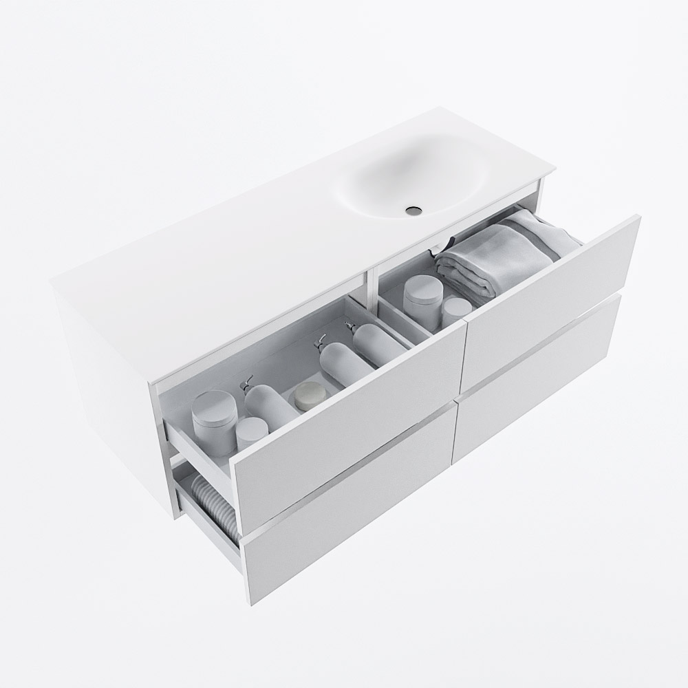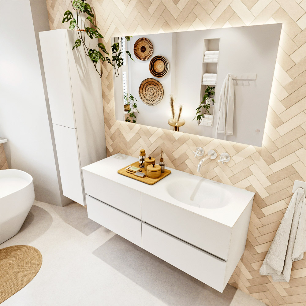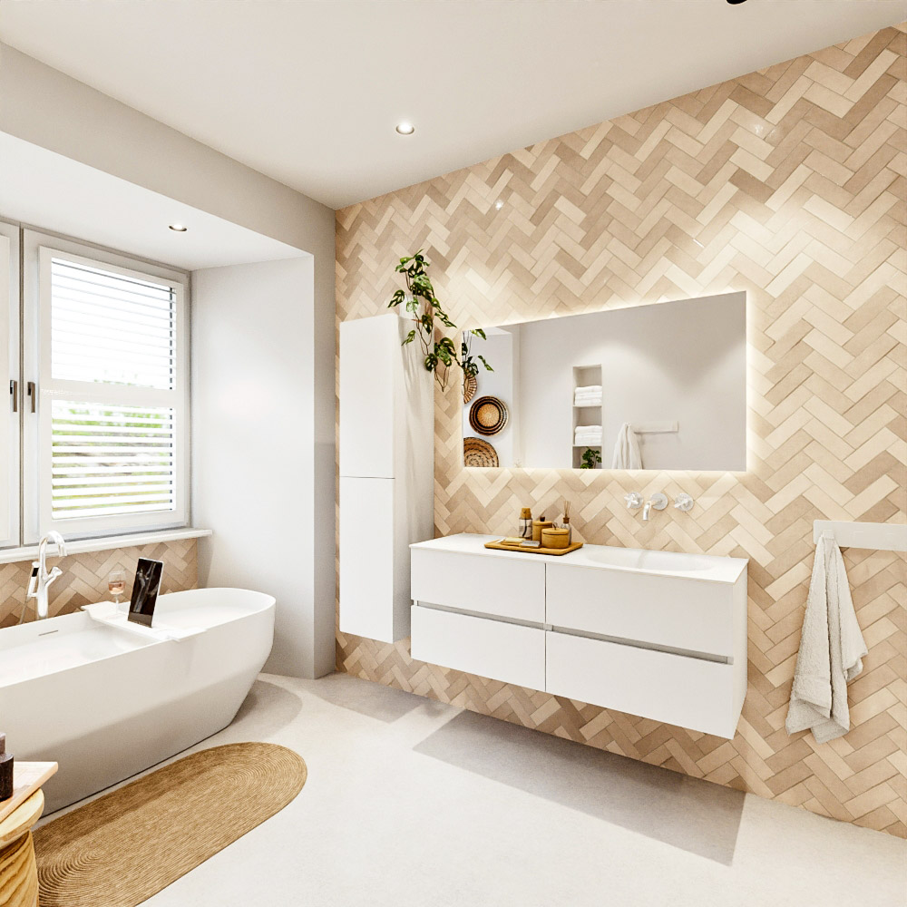 Ya sea que elija un color o un acabado de madera, un mueble de baño a medida, con o sin agujeros para grifos, el conjunto de muebles de baño Vica lo tiene todo. Con la serie Vica, puede elegir entre 3 modelos de lavabos: CLOUD y MOON en Solid Surface, con opciones de lavabo a la derecha, izquierda, en el medio o doble, y con o sin agujeros para grifos. También está el lavabo de cerámica DENIA con opciones en el medio y doble. El conjunto de muebles de baño Vica está disponible en una amplia gama de tamaños estándar, desde 60 cm hasta 200 cm, que aumentan en incrementos de 10 cm. El mueble de baño Vica está disponible en hasta 25 colores, incluyendo nuestros colores especiales Oro y Plata. Si no encuentra el tamaño o color ideal, siempre es posible hacer un pedido a medida. También puede coordinar su baño completo con columnas, bañeras, nichos y accesorios, todos en el mismo color. Con el conjunto de muebles de baño Vica, tendrá un mueble fantástico que completa su baño.