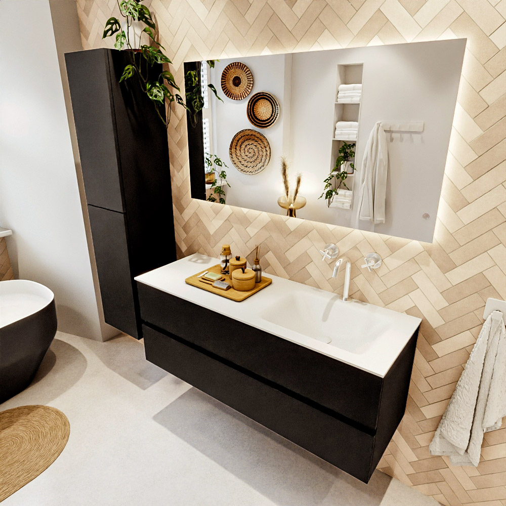 En español: Ya sea que elija un color o un acabado de madera, un mueble de baño a medida, con o sin agujeros para grifos, el conjunto de muebles de baño Vica lo tiene todo. Con la serie Vica, puede elegir entre 3 modelos de lavabos: CLOUD y MOON en Solid Surface, con opciones de lavabo a la derecha, izquierda, en el medio o doble, y con o sin agujeros para grifos. También está el lavabo de cerámica DENIA con opciones en el medio y doble. El conjunto de muebles de baño Vica está disponible en una amplia gama de tamaños estándar, desde 60 cm hasta 200 cm, que aumentan en incrementos de 10 cm. El mueble de baño Vica está disponible en hasta 25 colores, incluyendo nuestros colores especiales Oro y Plata. Si no encuentra el tamaño o color ideal, siempre es posible hacer un pedido a medida. También puede coordinar su baño completo con columnas, bañeras, nichos y accesorios, todos en el mismo color. Con el conjunto de muebles de baño Vica, tendrá un mueble fantástico que completa su baño.