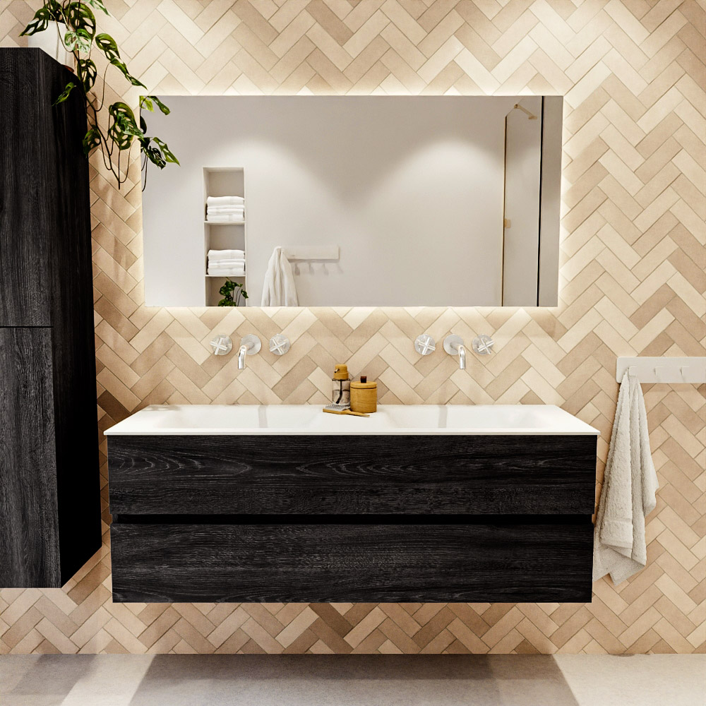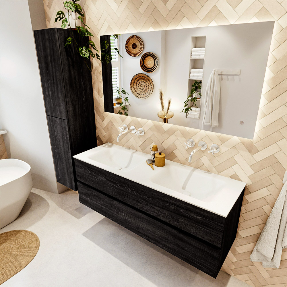 Ya sea que elija un color o un acabado de madera, un mueble de baño a medida, con o sin agujeros para grifos, el conjunto de muebles de baño Vica lo tiene todo. Con la serie Vica, puede elegir entre 3 modelos de lavabos: CLOUD y MOON en Solid Surface, con opciones de lavabo a la derecha, izquierda, en el medio o doble, y con o sin agujeros para grifos. También está el lavabo de cerámica DENIA con opciones en el medio y doble. El conjunto de muebles de baño Vica está disponible en una amplia gama de tamaños estándar, desde 60 cm hasta 200 cm, que aumentan en incrementos de 10 cm. El mueble de baño Vica está disponible en hasta 25 colores, incluyendo nuestros colores especiales Oro y Plata. Si no encuentra el tamaño o color ideal, siempre es posible hacer un pedido a medida. También puede coordinar su baño completo con columnas, bañeras, nichos y accesorios, todos en el mismo color. Con el conjunto de muebles de baño Vica, tendrá un mueble fantástico que completa su baño.