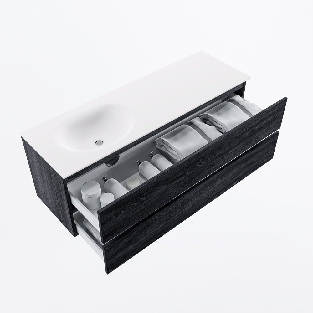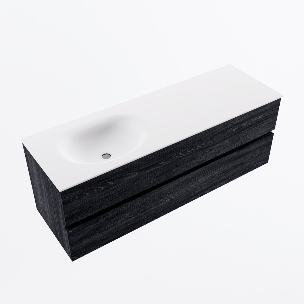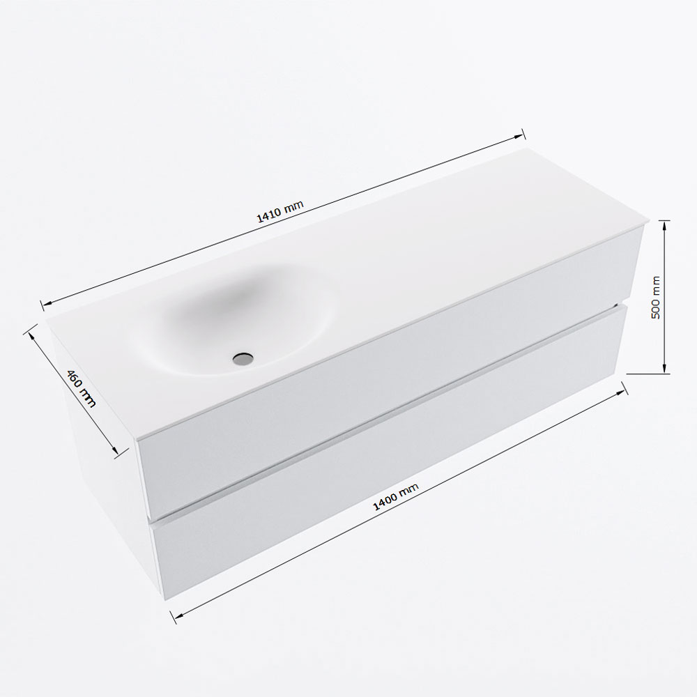 MONDIAZ VICA 140cm mueble de baño Antracite 2 cajones. Lavabo MOON Izquierda sin orificio, color Talc.