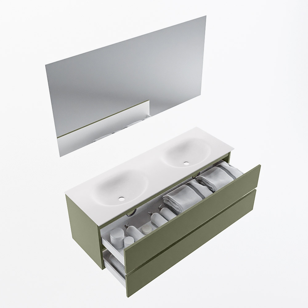 En español: Ya sea que elija un color o un acabado de madera, un mueble de baño a medida, con o sin agujeros para grifos, el conjunto de muebles de baño Vica lo tiene todo. Con la serie Vica, puede elegir entre 3 modelos de lavabos: CLOUD y MOON en Solid Surface, con opciones de lavabo a la derecha, izquierda, en el medio o doble, y con o sin agujeros para grifos. También está el lavabo de cerámica DENIA con opciones en el medio y doble. El conjunto de muebles de baño Vica está disponible en una amplia gama de tamaños estándar, desde 60 cm hasta 200 cm, que aumentan en incrementos de 10 cm. El mueble de baño Vica está disponible en hasta 25 colores, incluyendo nuestros colores especiales Oro y Plata. Si no encuentra el tamaño o color ideal, siempre es posible hacer un pedido a medida. También puede coordinar su baño completo con columnas, bañeras, nichos y accesorios, todos en el mismo color. Con el conjunto de muebles de baño Vica, tendrá un mueble fantástico que completa su baño.