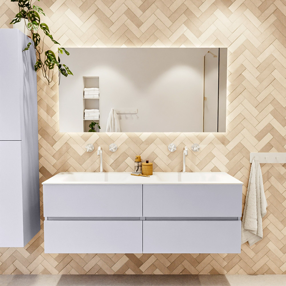 Ya sea que elija un color o un acabado de madera, un mueble de baño a medida, con o sin agujeros para grifos, el conjunto de muebles de baño Vica lo tiene todo. Con la serie Vica, puede elegir entre 3 modelos de lavabos: CLOUD y MOON en Solid Surface, con opciones de lavabo a la derecha, izquierda, en el medio o doble, y con o sin agujeros para grifos. También está el lavabo de cerámica DENIA con opciones en el medio y doble. El conjunto de muebles de baño Vica está disponible en una amplia gama de tamaños estándar, desde 60 cm hasta 200 cm, que aumentan en incrementos de 10 cm. El mueble de baño Vica está disponible en hasta 25 colores, incluyendo nuestros colores especiales Oro y Plata. Si no encuentra el tamaño o color ideal, siempre es posible hacer un pedido a medida. También puede coordinar su baño completo con columnas, bañeras, nichos y accesorios, todos en el mismo color. Con el conjunto de muebles de baño Vica, tendrá un mueble fantástico que completa su baño.