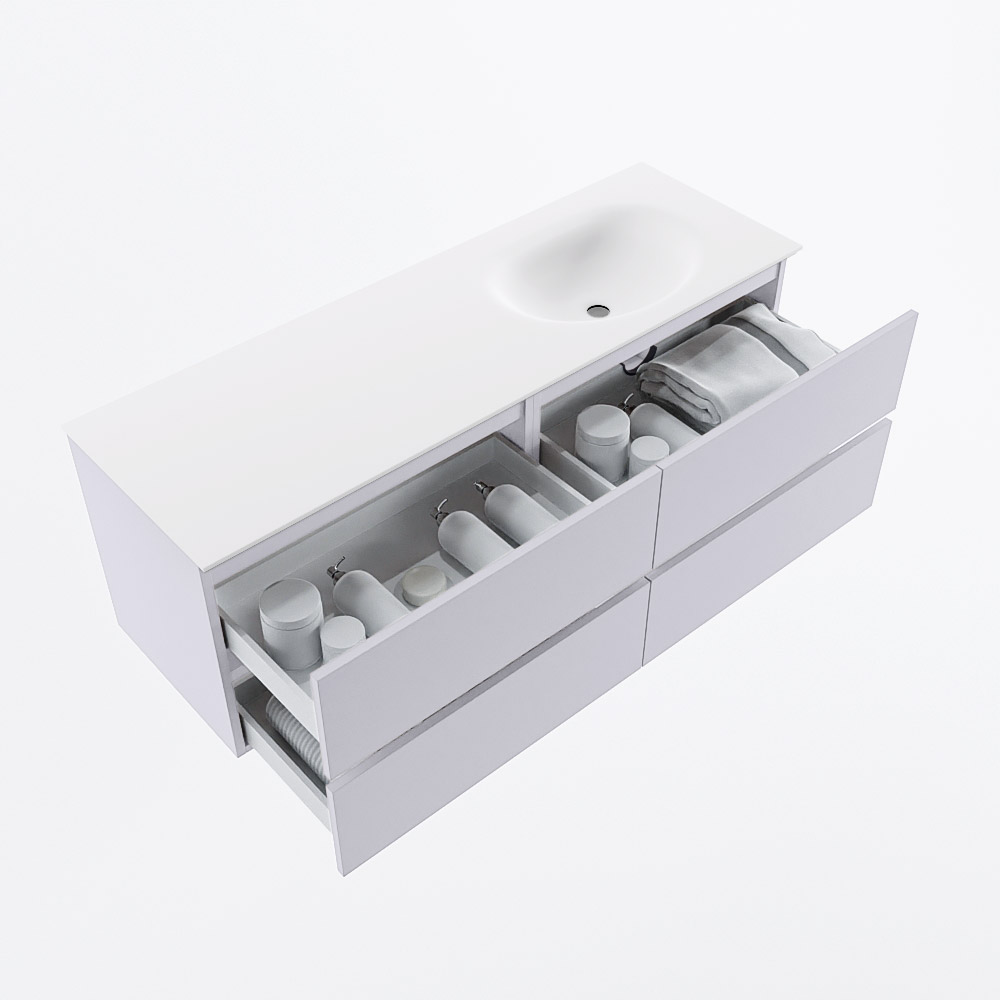 Ya sea que elija un color o un acabado de madera, un mueble de baño a medida, con o sin agujeros para grifos, el conjunto de muebles de baño Vica lo tiene todo. Con la serie Vica, puede elegir entre 3 modelos de lavabos: CLOUD y MOON en Solid Surface, con opciones de lavabo a la derecha, izquierda, en el medio o doble, y con o sin agujeros para grifos. También está el lavabo de cerámica DENIA con opciones en el medio y doble. El conjunto de muebles de baño Vica está disponible en una amplia gama de tamaños estándar, desde 60 cm hasta 200 cm, que aumentan en incrementos de 10 cm. El mueble de baño Vica está disponible en hasta 25 colores, incluyendo nuestros colores especiales Oro y Plata. Si no encuentra el tamaño o color ideal, siempre es posible hacer un pedido a medida. También puede coordinar su baño completo con columnas, bañeras, nichos y accesorios, todos en el mismo color. Con el conjunto de muebles de baño Vica, tendrá un mueble fantástico que completa su baño.