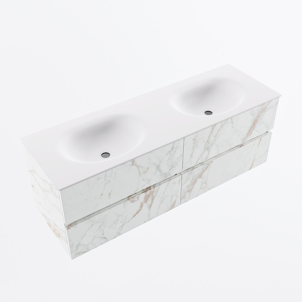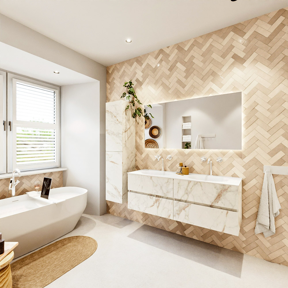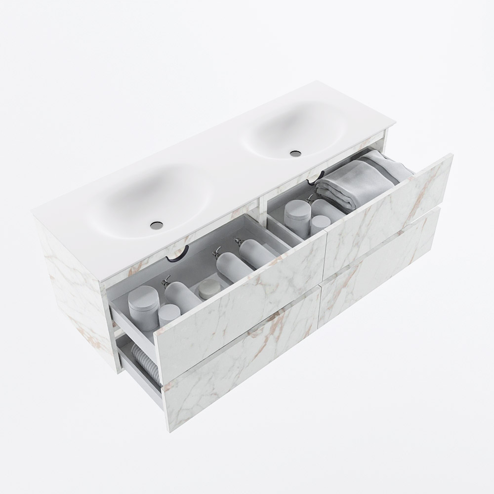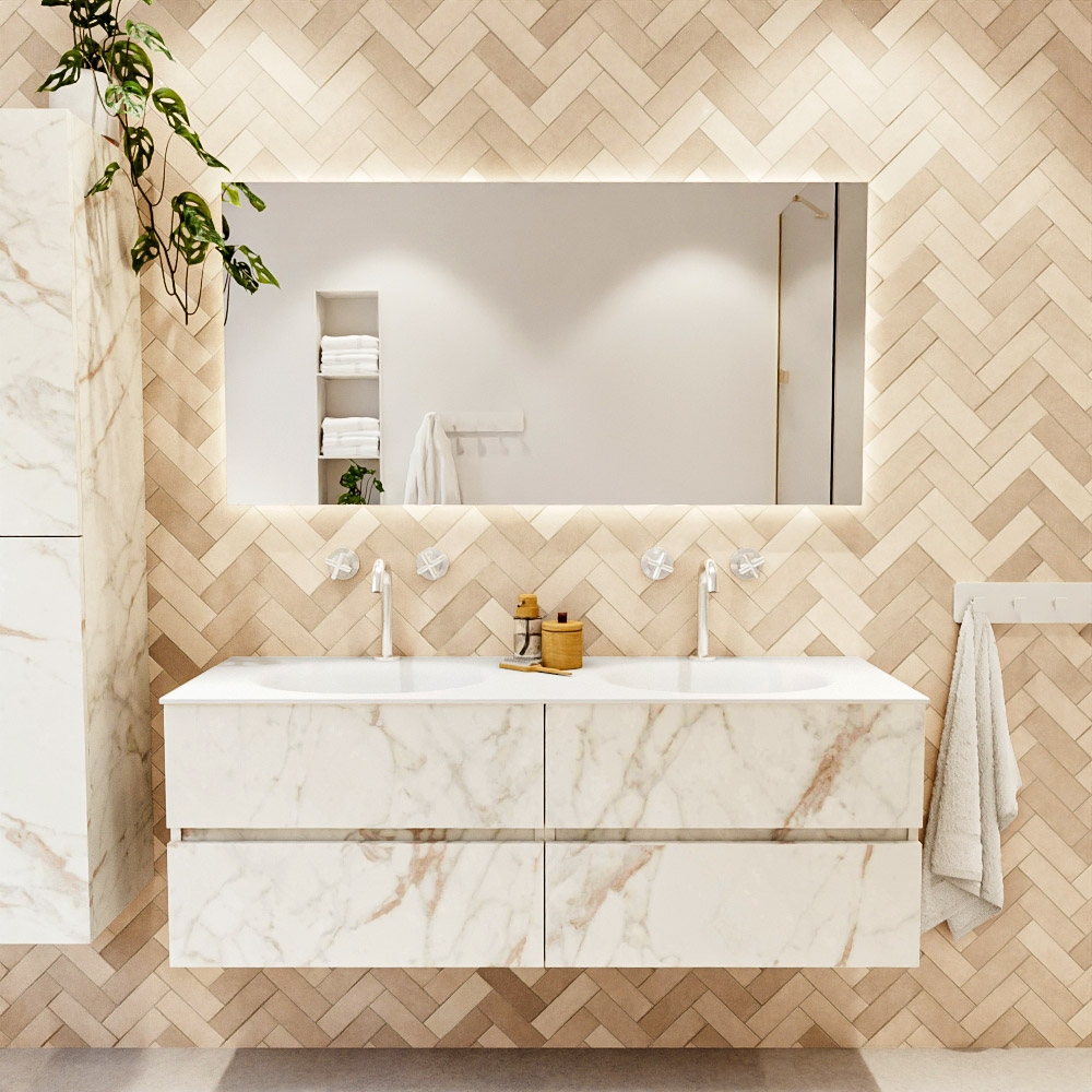 MONDIAZ VICA 140cm mueble de baño Carrara 4 cajones. Lavabo MOON Doble 2 orificios, color Talc.