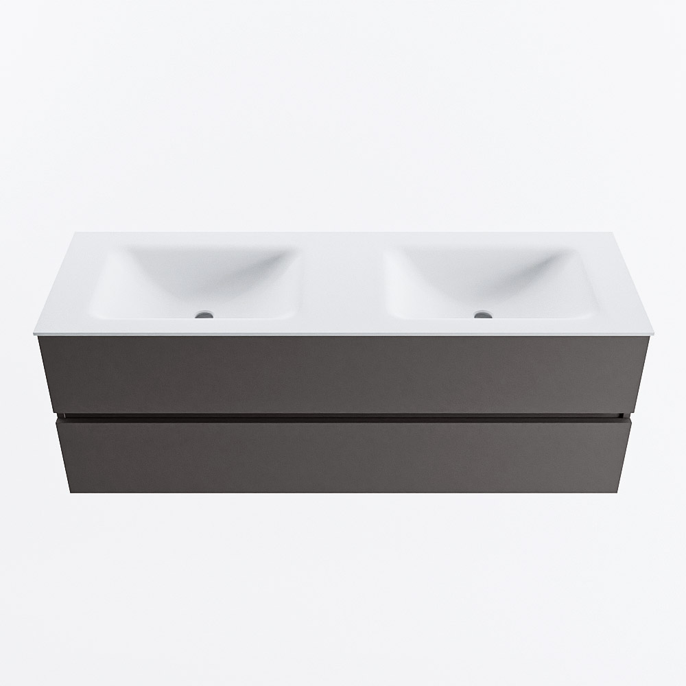 MONDIAZ VICA 140cm mueble de baño Dark Grey 2 cajones. Lavabo CLOUD Doble 2 orificios, color Talc.