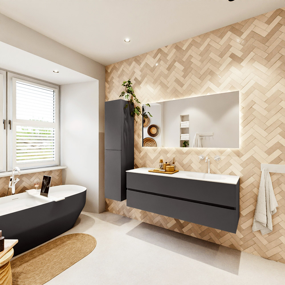 Ya sea que elija un color o un acabado de madera, un mueble de baño a medida, con o sin agujeros para grifos, el conjunto de muebles de baño Vica lo tiene todo. Con la serie Vica, puede elegir entre 3 modelos de lavabos: CLOUD y MOON en Solid Surface, con opciones de lavabo a la derecha, izquierda, en el medio o doble, y con o sin agujeros para grifos. También está el lavabo de cerámica DENIA con opciones en el medio y doble. El conjunto de muebles de baño Vica está disponible en una amplia gama de tamaños estándar, desde 60 cm hasta 200 cm, que aumentan en incrementos de 10 cm. El mueble de baño Vica está disponible en hasta 25 colores, incluyendo nuestros colores especiales Oro y Plata. Si no encuentra el tamaño o color ideal, siempre es posible hacer un pedido a medida. También puede coordinar su baño completo con columnas, bañeras, nichos y accesorios, todos en el mismo color. Con el conjunto de muebles de baño Vica, tendrá un mueble fantástico que completa su baño.