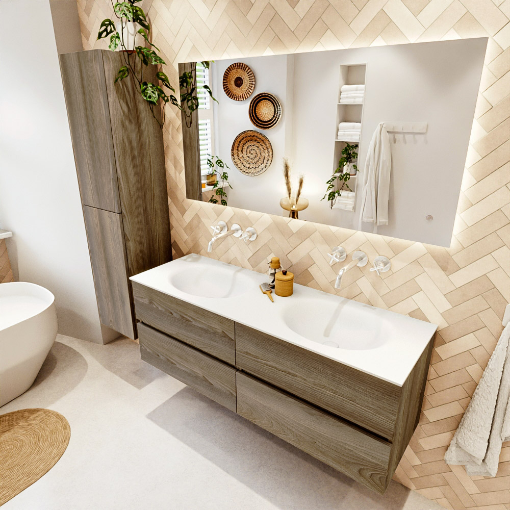 Ya sea que elija un color o un acabado de madera, un mueble de baño a medida, con o sin agujeros para grifos, el conjunto de muebles de baño Vica lo tiene todo. Con la serie Vica, puede elegir entre 3 modelos de lavabos: CLOUD y MOON en Solid Surface, con opciones de lavabo a la derecha, izquierda, en el medio o doble, y con o sin agujeros para grifos. También está el lavabo de cerámica DENIA con opciones en el medio y doble. El conjunto de muebles de baño Vica está disponible en una amplia gama de tamaños estándar, desde 60 cm hasta 200 cm, que aumentan en incrementos de 10 cm. El mueble de baño Vica está disponible en hasta 25 colores, incluyendo nuestros colores especiales Oro y Plata. Si no encuentra el tamaño o color ideal, siempre es posible hacer un pedido a medida. También puede coordinar su baño completo con columnas, bañeras, nichos y accesorios, todos en el mismo color. Con el conjunto de muebles de baño Vica, tendrá un mueble fantástico que completa su baño.