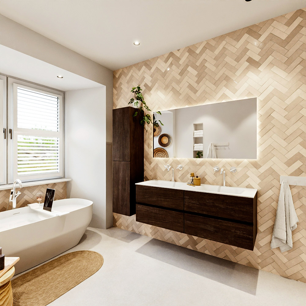 Ya sea que elija un color o un acabado de madera, un mueble de baño a medida, con o sin agujeros para grifos, el conjunto de muebles de baño Vica lo tiene todo. Con la serie Vica, puede elegir entre 3 modelos de lavabos: CLOUD y MOON en Solid Surface, con opciones de lavabo a la derecha, izquierda, en el medio o doble, y con o sin agujeros para grifos. También está el lavabo de cerámica DENIA con opciones en el medio y doble. El conjunto de muebles de baño Vica está disponible en una amplia gama de tamaños estándar, desde 60 cm hasta 200 cm, que aumentan en incrementos de 10 cm. El mueble de baño Vica está disponible en hasta 25 colores, incluyendo nuestros colores especiales Oro y Plata. Si no encuentra el tamaño o color ideal, siempre es posible hacer un pedido a medida. También puede coordinar su baño completo con columnas, bañeras, nichos y accesorios, todos en el mismo color. Con el conjunto de muebles de baño Vica, tendrá un mueble fantástico que completa su baño.