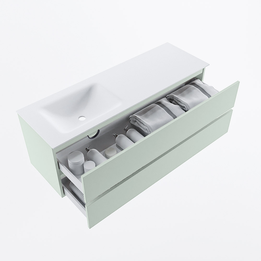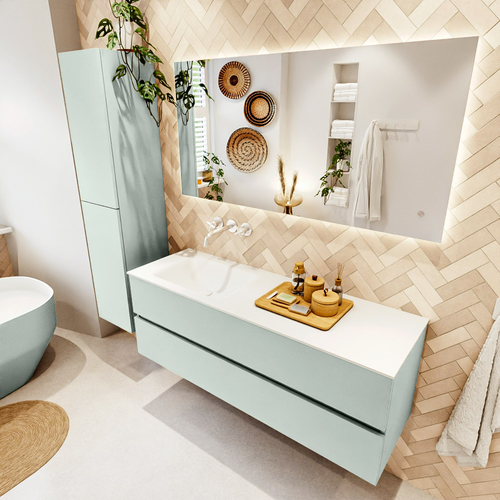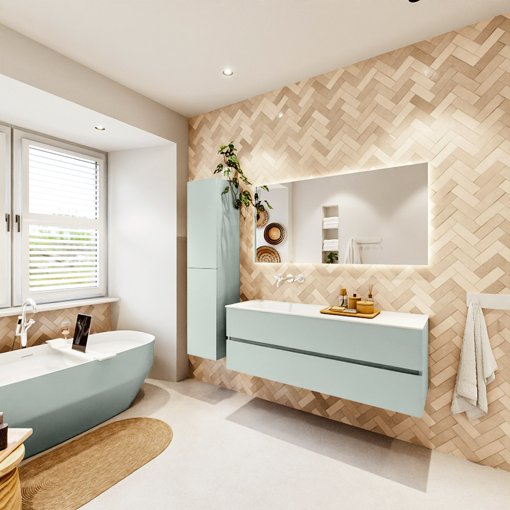 Ya sea que elija un color o un acabado de madera, un mueble de baño a medida, con o sin agujeros para grifos, el conjunto de muebles de baño Vica lo tiene todo. Con la serie Vica, puede elegir entre 3 modelos de lavabos: CLOUD y MOON en Solid Surface, con opciones de lavabo a la derecha, izquierda, en el medio o doble, y con o sin agujeros para grifos. También está el lavabo de cerámica DENIA con opciones en el medio y doble. El conjunto de muebles de baño Vica está disponible en una amplia gama de tamaños estándar, desde 60 cm hasta 200 cm, que aumentan en incrementos de 10 cm. El mueble de baño Vica está disponible en hasta 25 colores, incluyendo nuestros colores especiales Oro y Plata. Si no encuentra el tamaño o color ideal, siempre es posible hacer un pedido a medida. También puede coordinar su baño completo con columnas, bañeras, nichos y accesorios, todos en el mismo color. Con el conjunto de muebles de baño Vica, tendrá un mueble fantástico que completa su baño.