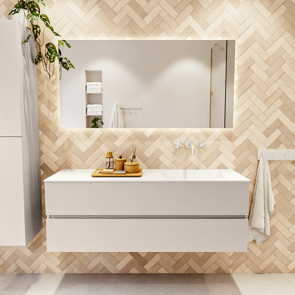 Ya sea que elija un color o un acabado de madera, un mueble de baño a medida, con o sin agujeros para grifos, el conjunto de muebles de baño Vica lo tiene todo. Con la serie Vica, puede elegir entre 3 modelos de lavabos: CLOUD y MOON en Solid Surface, con opciones de lavabo a la derecha, izquierda, en el medio o doble, y con o sin agujeros para grifos. También está el lavabo de cerámica DENIA con opciones en el medio y doble. El conjunto de muebles de baño Vica está disponible en una amplia gama de tamaños estándar, desde 60 cm hasta 200 cm, que aumentan en incrementos de 10 cm. El mueble de baño Vica está disponible en hasta 25 colores, incluyendo nuestros colores especiales Oro y Plata. Si no encuentra el tamaño o color ideal, siempre es posible hacer un pedido a medida. También puede coordinar su baño completo con columnas, bañeras, nichos y accesorios, todos en el mismo color. Con el conjunto de muebles de baño Vica, tendrá un mueble fantástico que completa su baño.