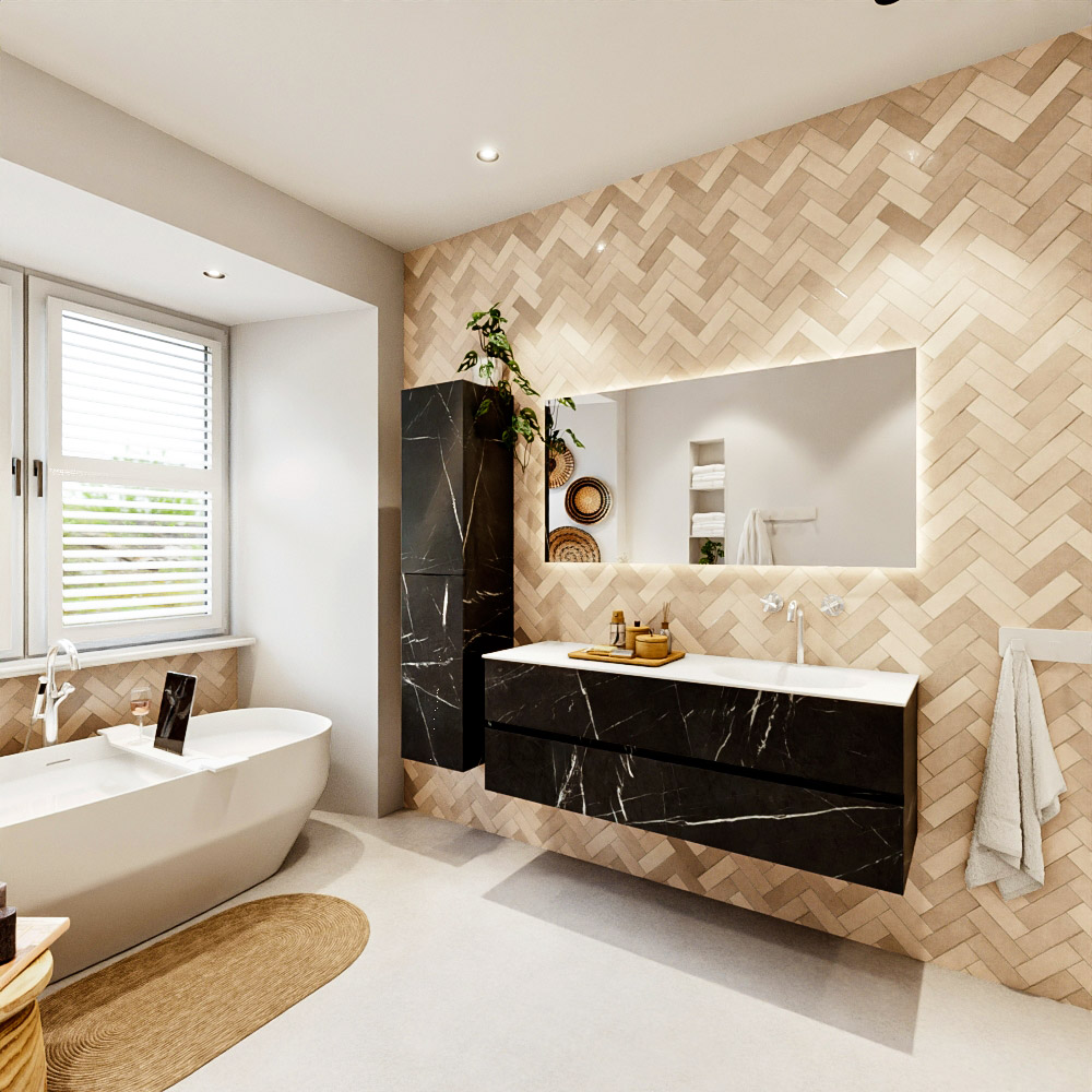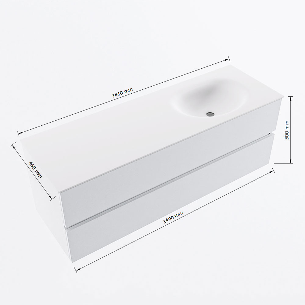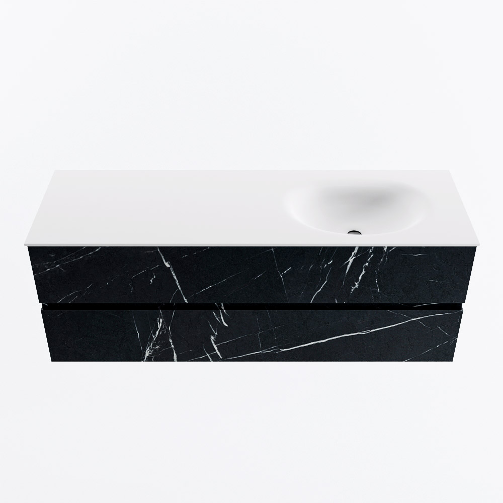 MONDIAZ VICA 140cm mueble de baño Marquina 2 cajones. Lavabo MOON Derecho 1 orificio, color Talc.