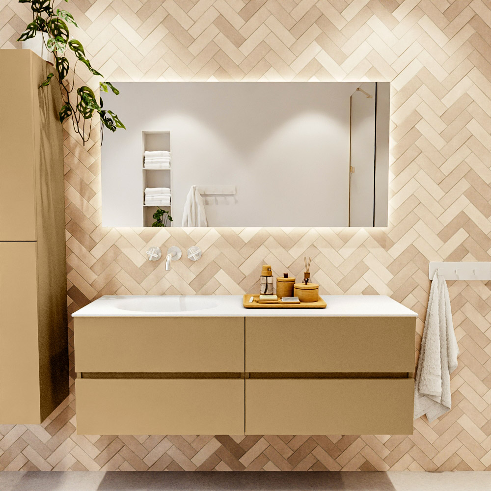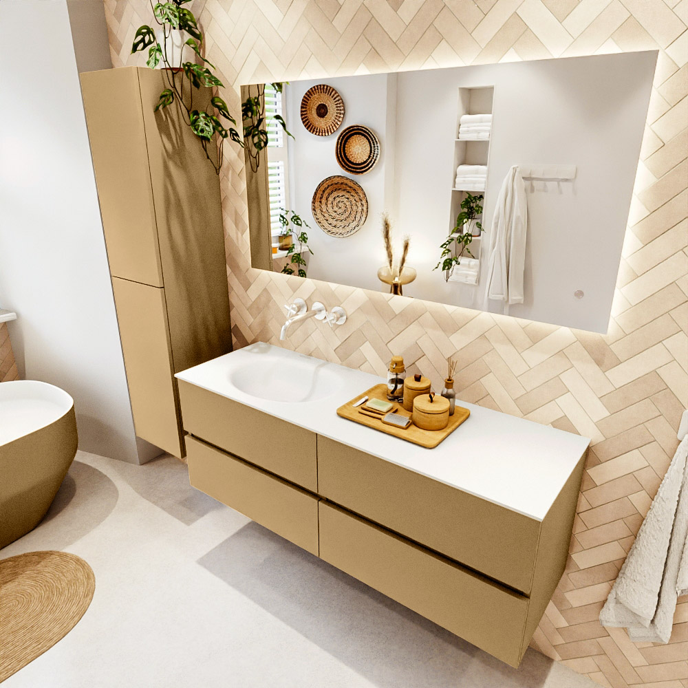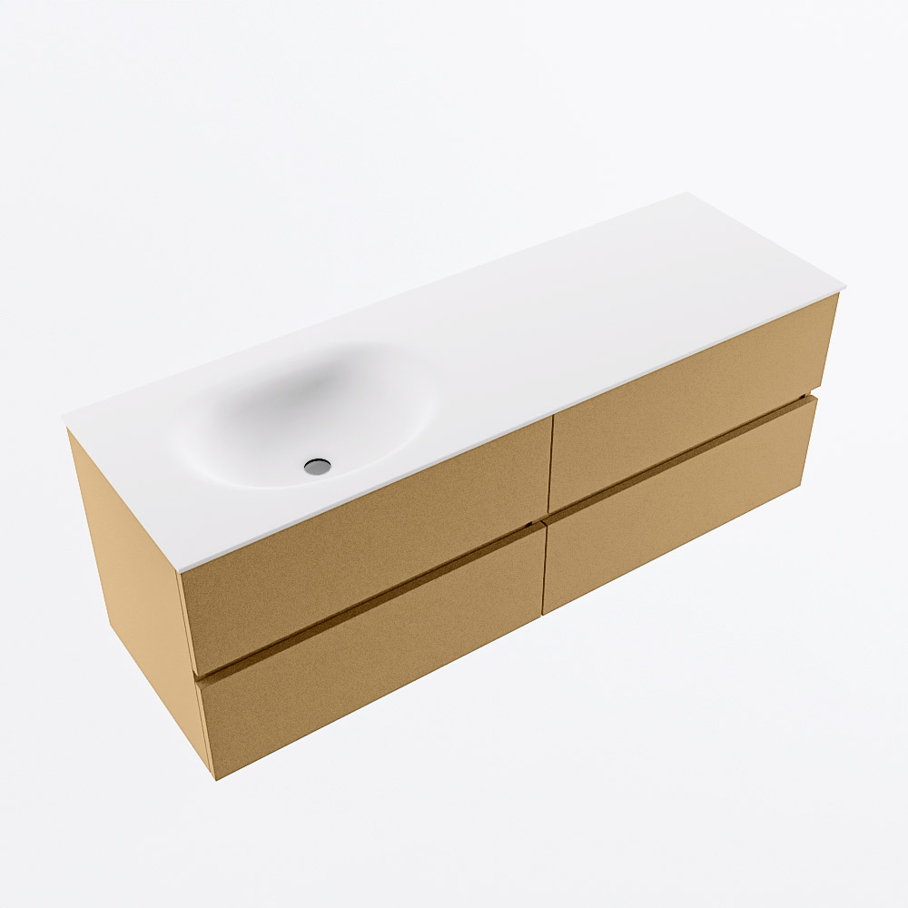 MONDIAZ VICA 140cm mueble de baño Oro 4 cajones. Lavabo MOON Izquierda sin orificio, color Talc.